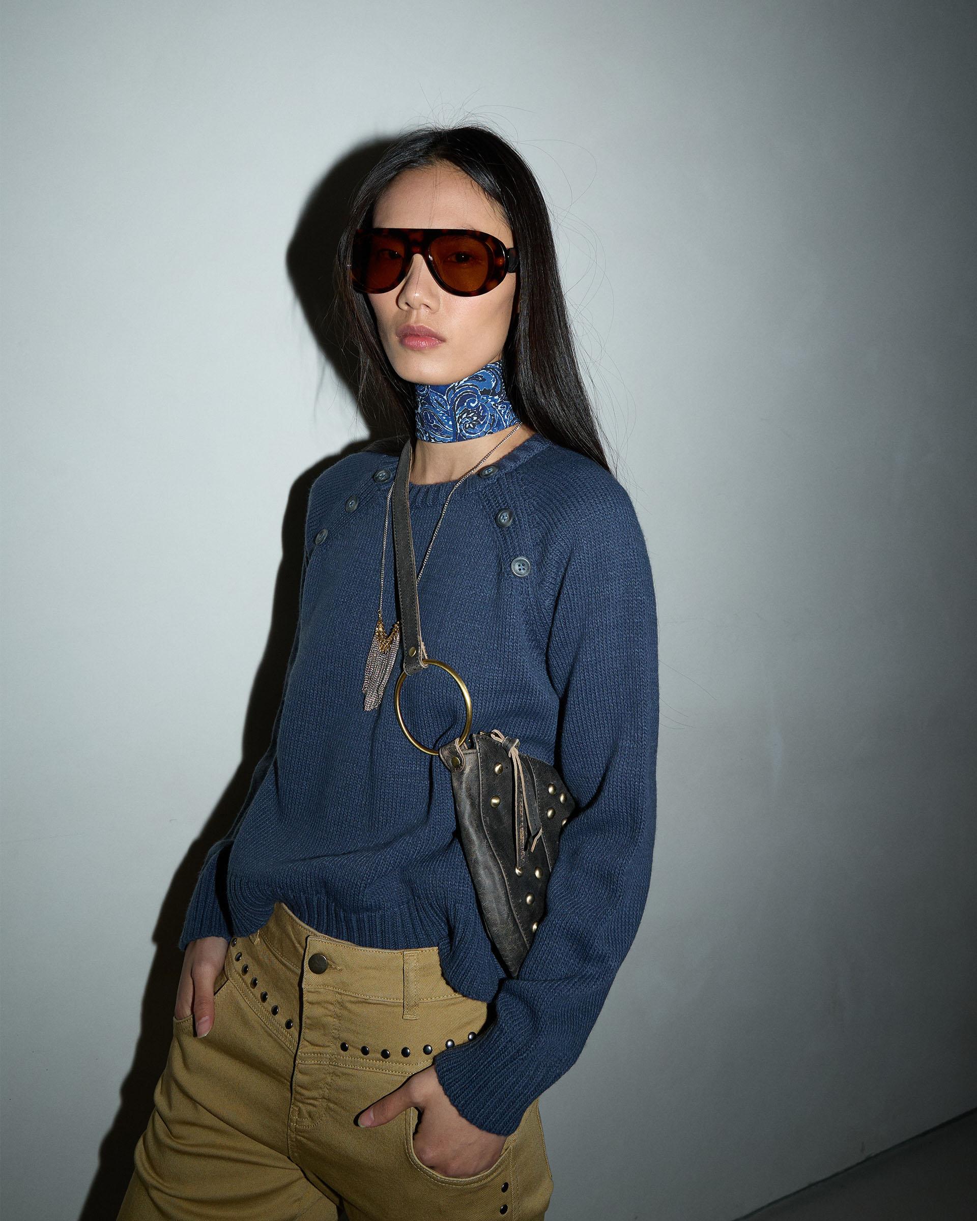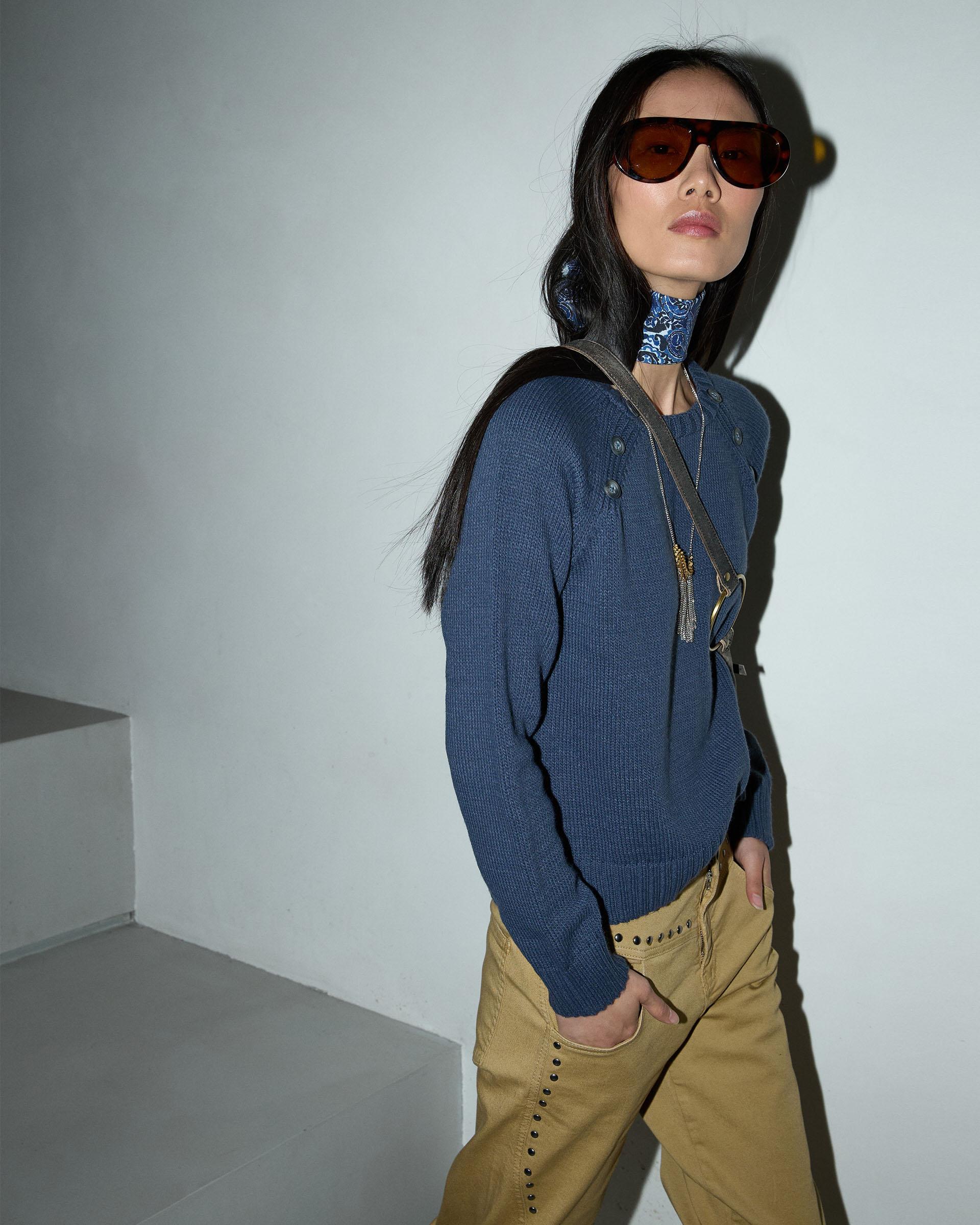 Jersey Cuello Redondo Botónes Azul