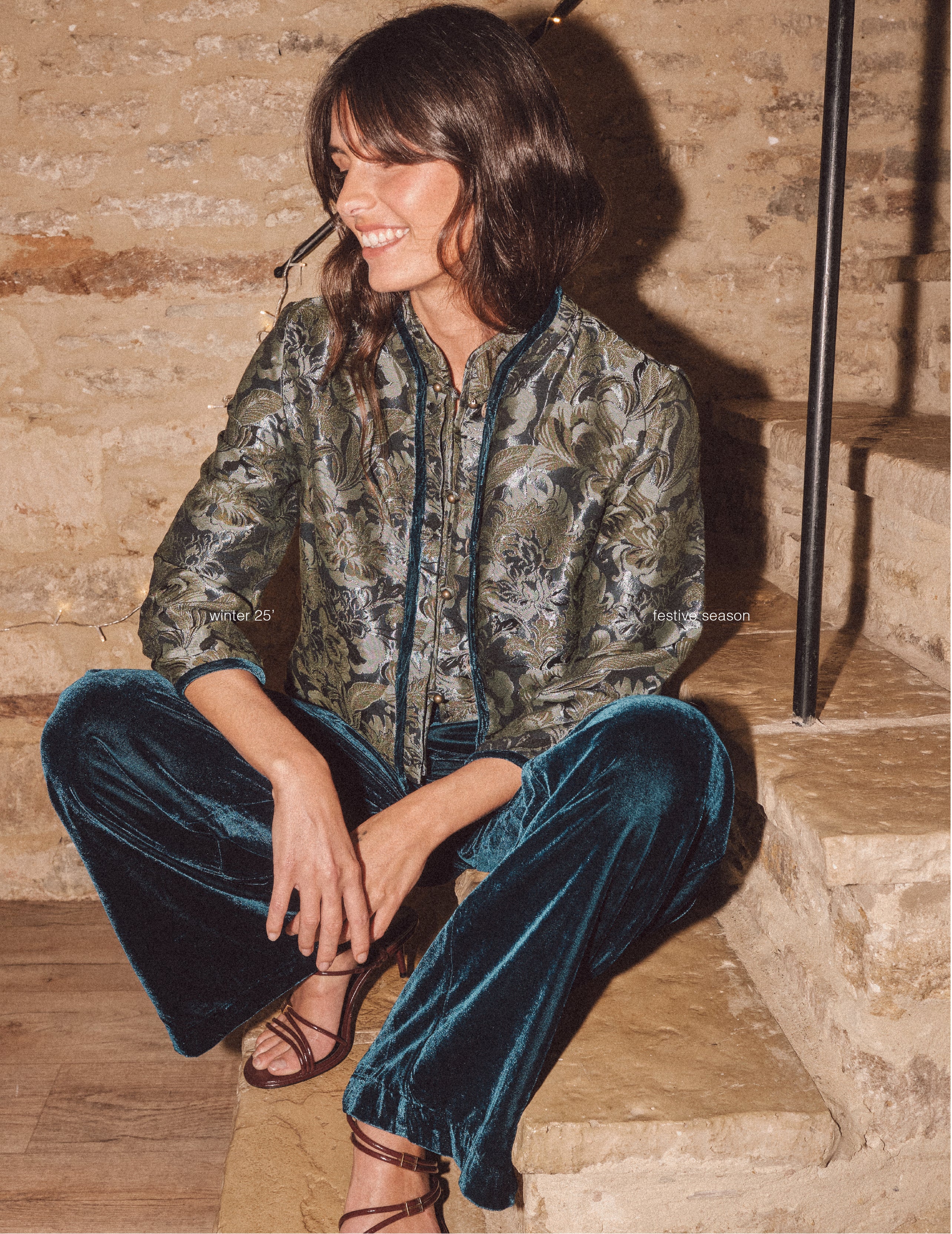 • Chaqueta Jacquard Terciopelo Verde Agua
