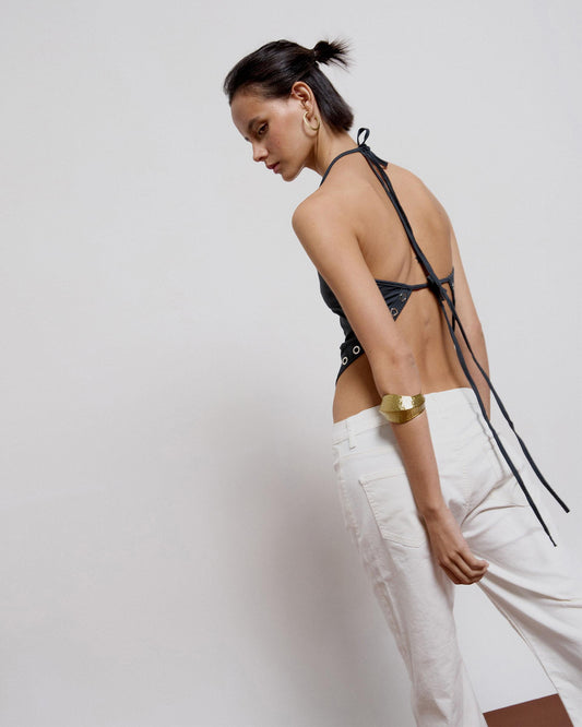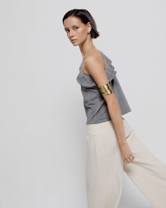 • Top Terciopelo Manga Abullonada Verde Oscuro