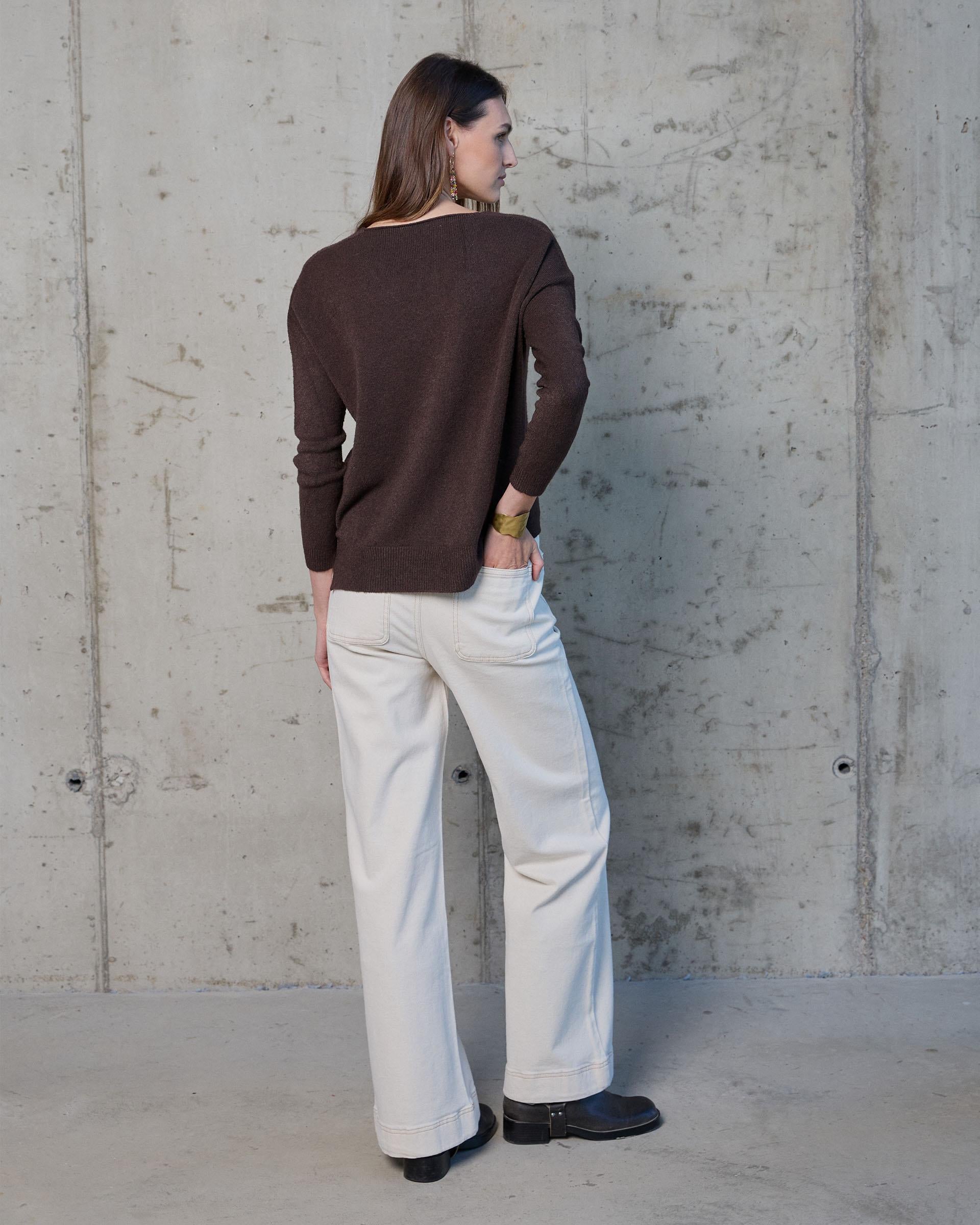 Jersey Cuello Pico Bajo Asimétrico Marrón