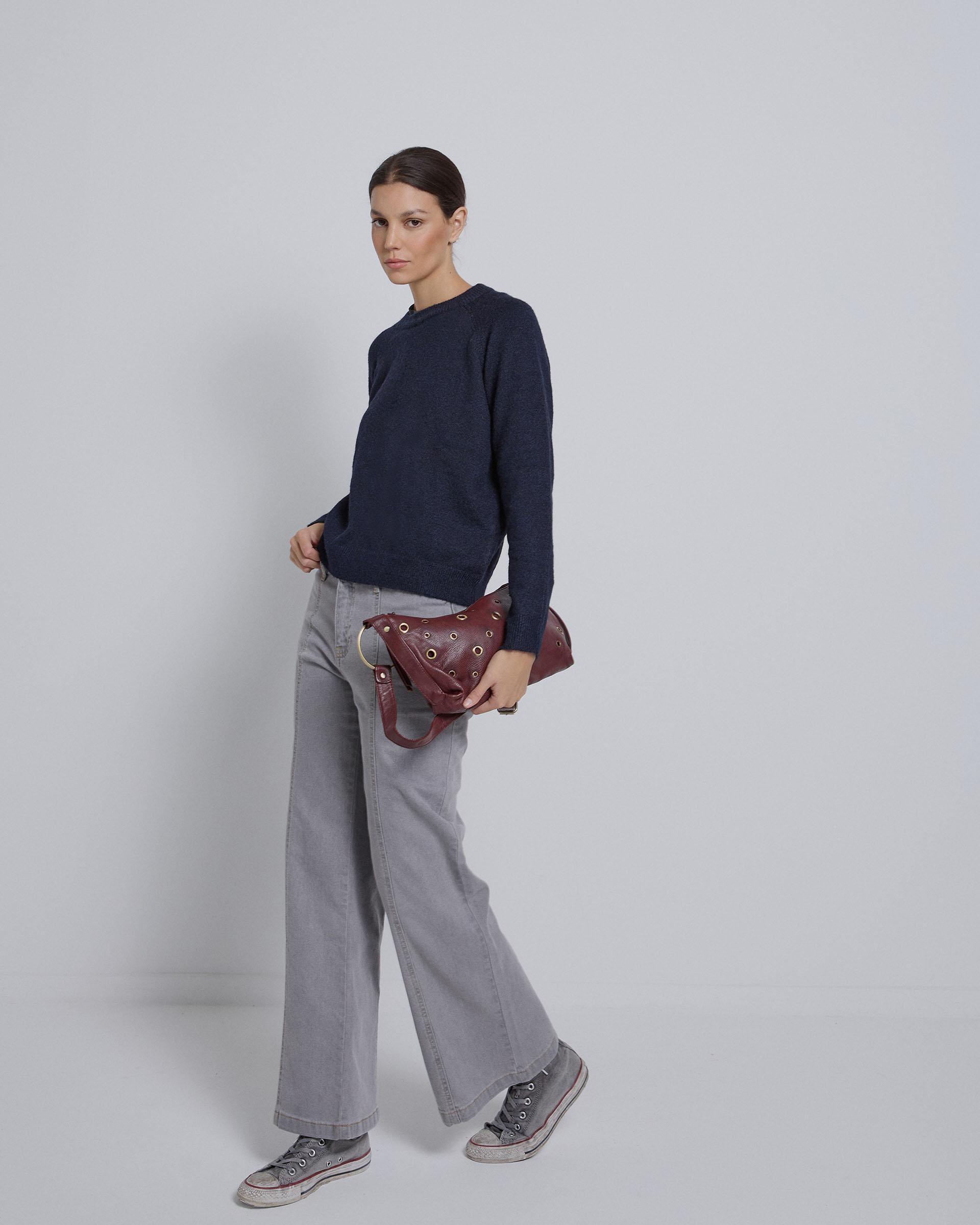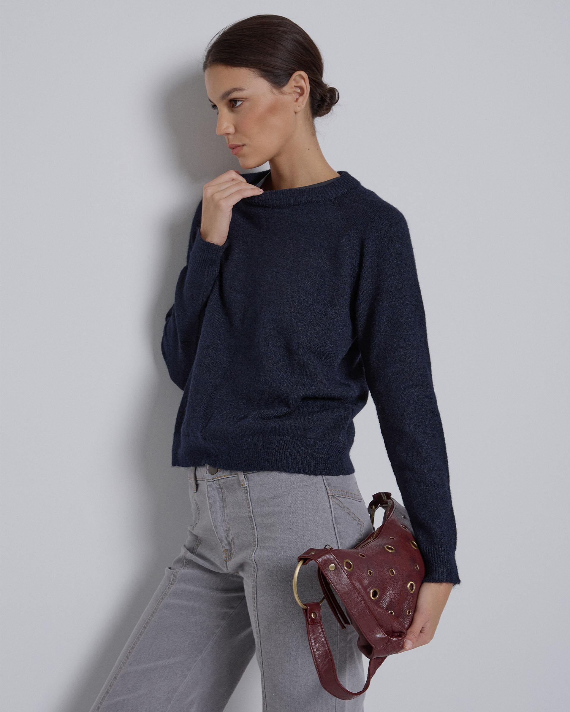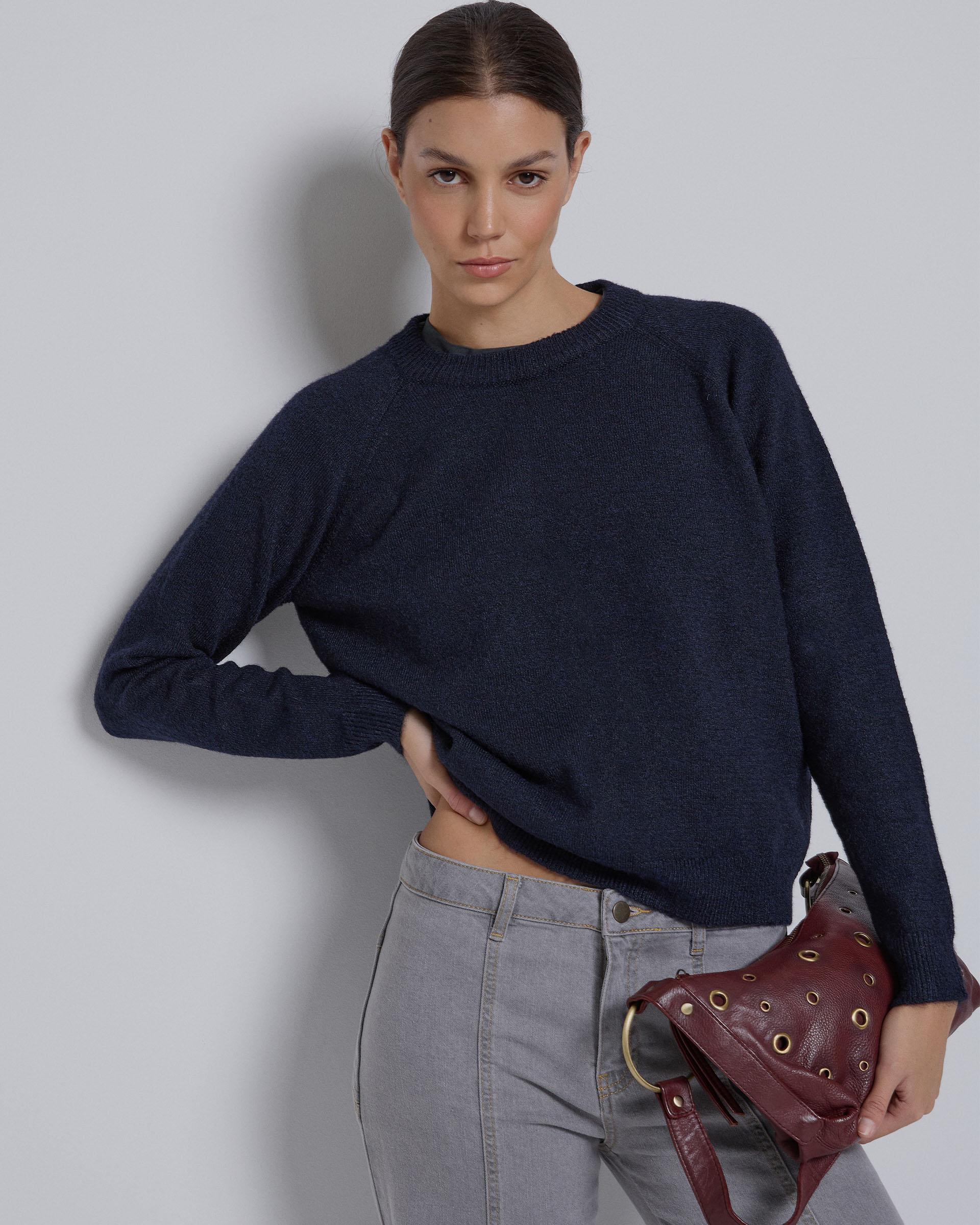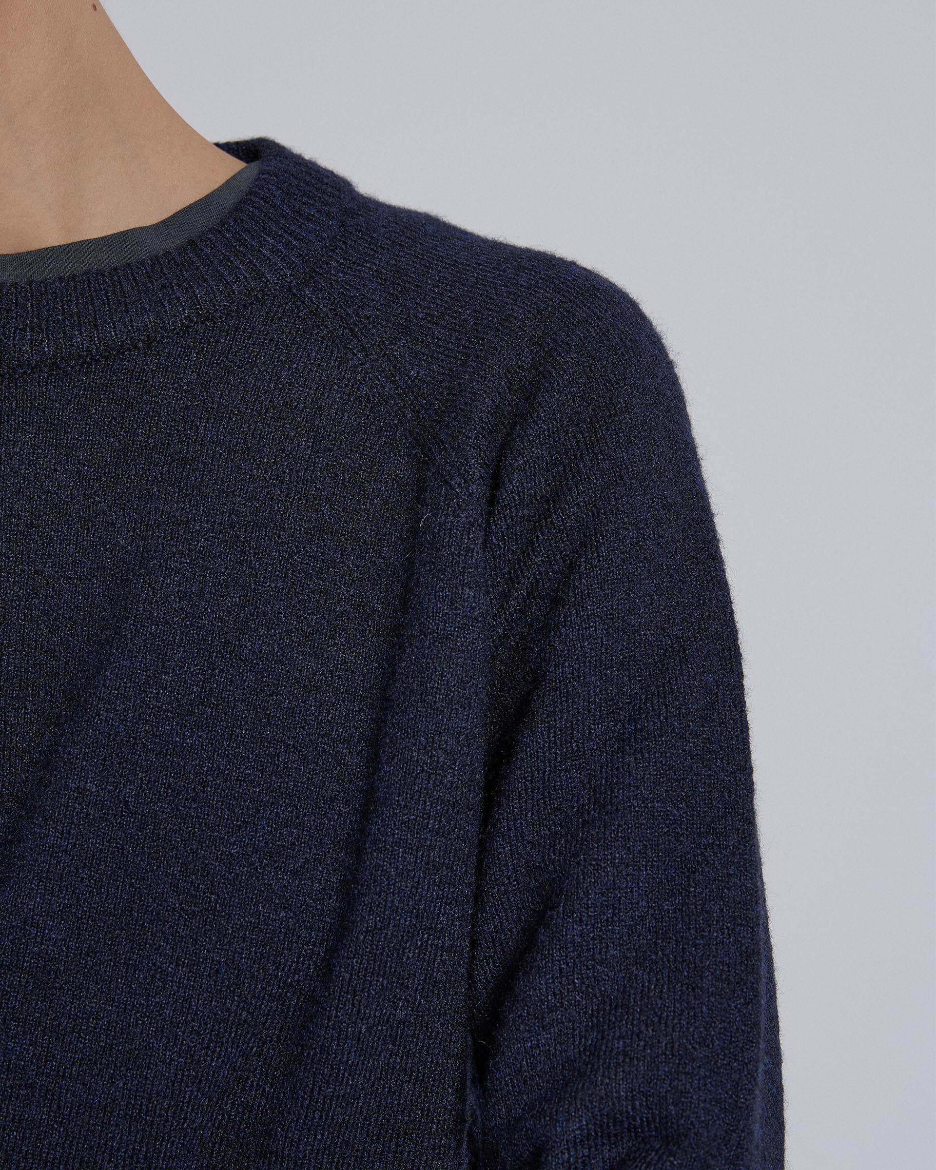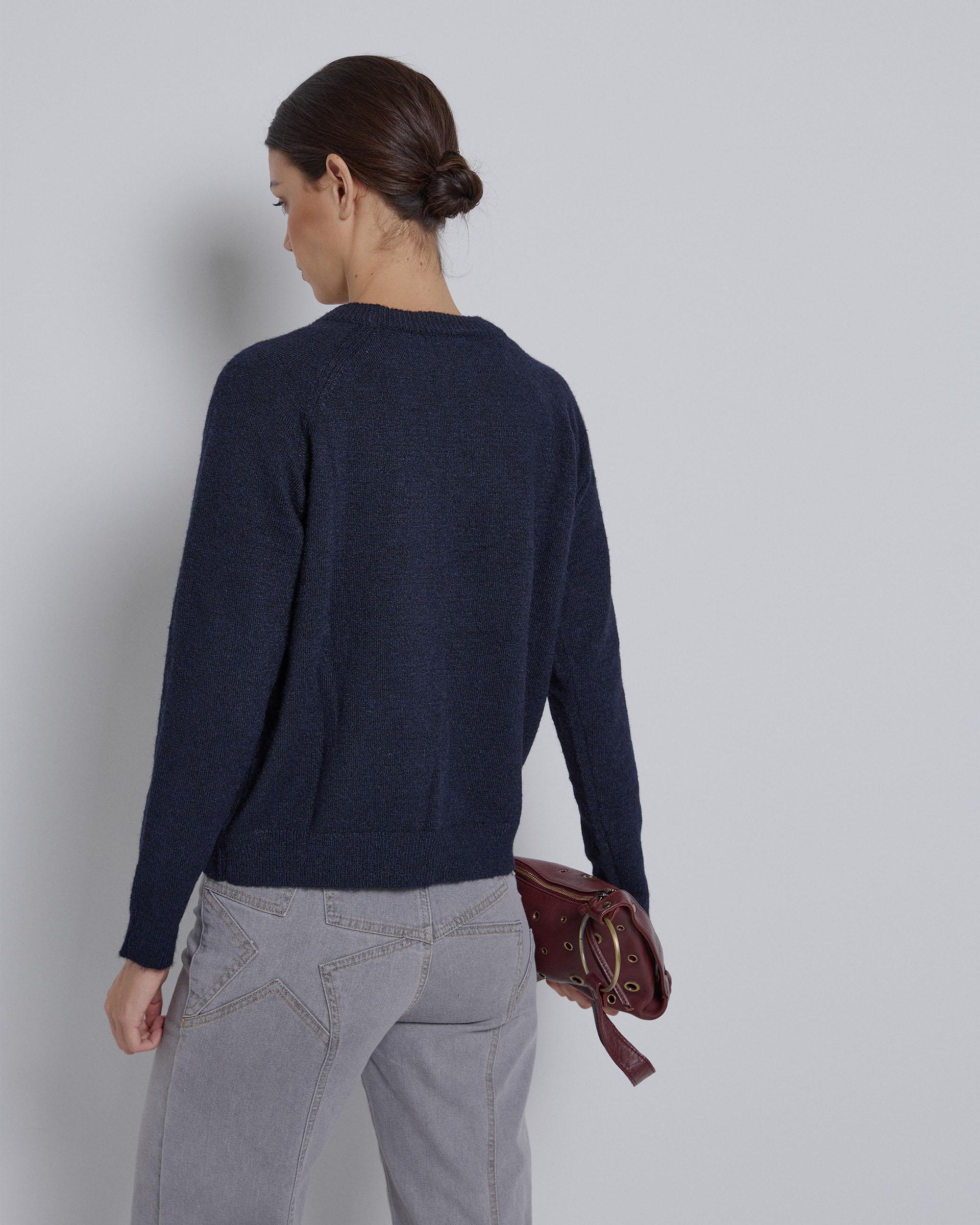 Jersey de cuello redondo de color azul marino jaspeado.