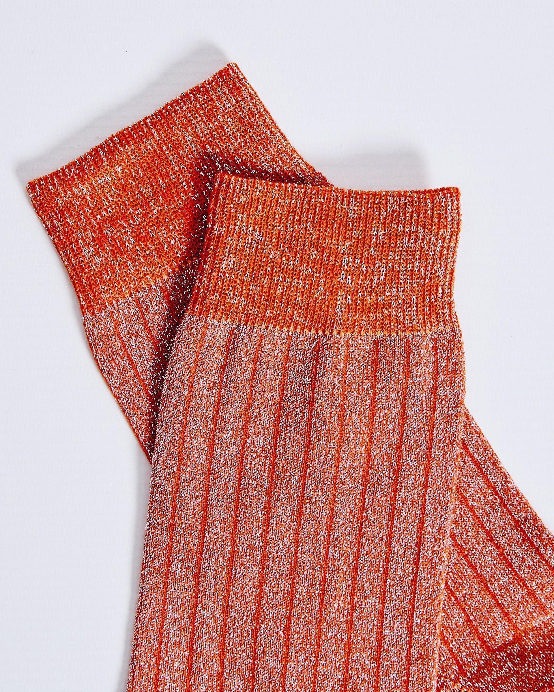Calcetines de media caña con canalé de color naranja con brillo al tono.