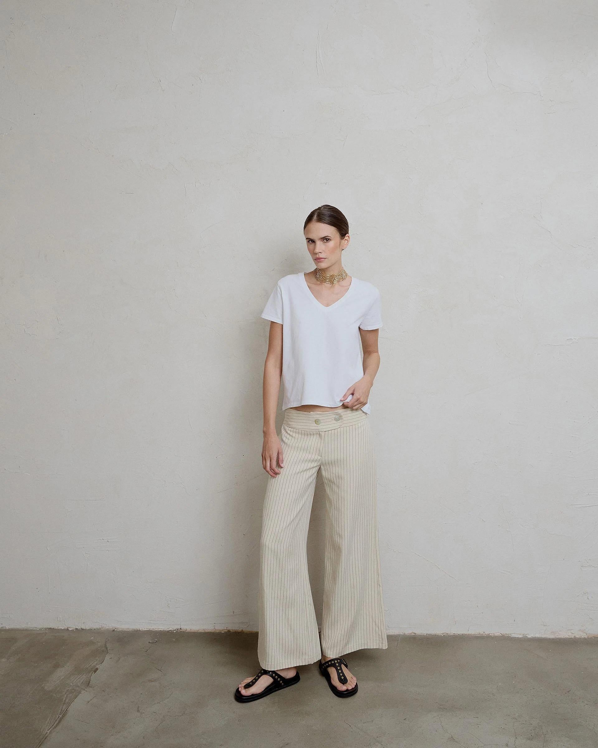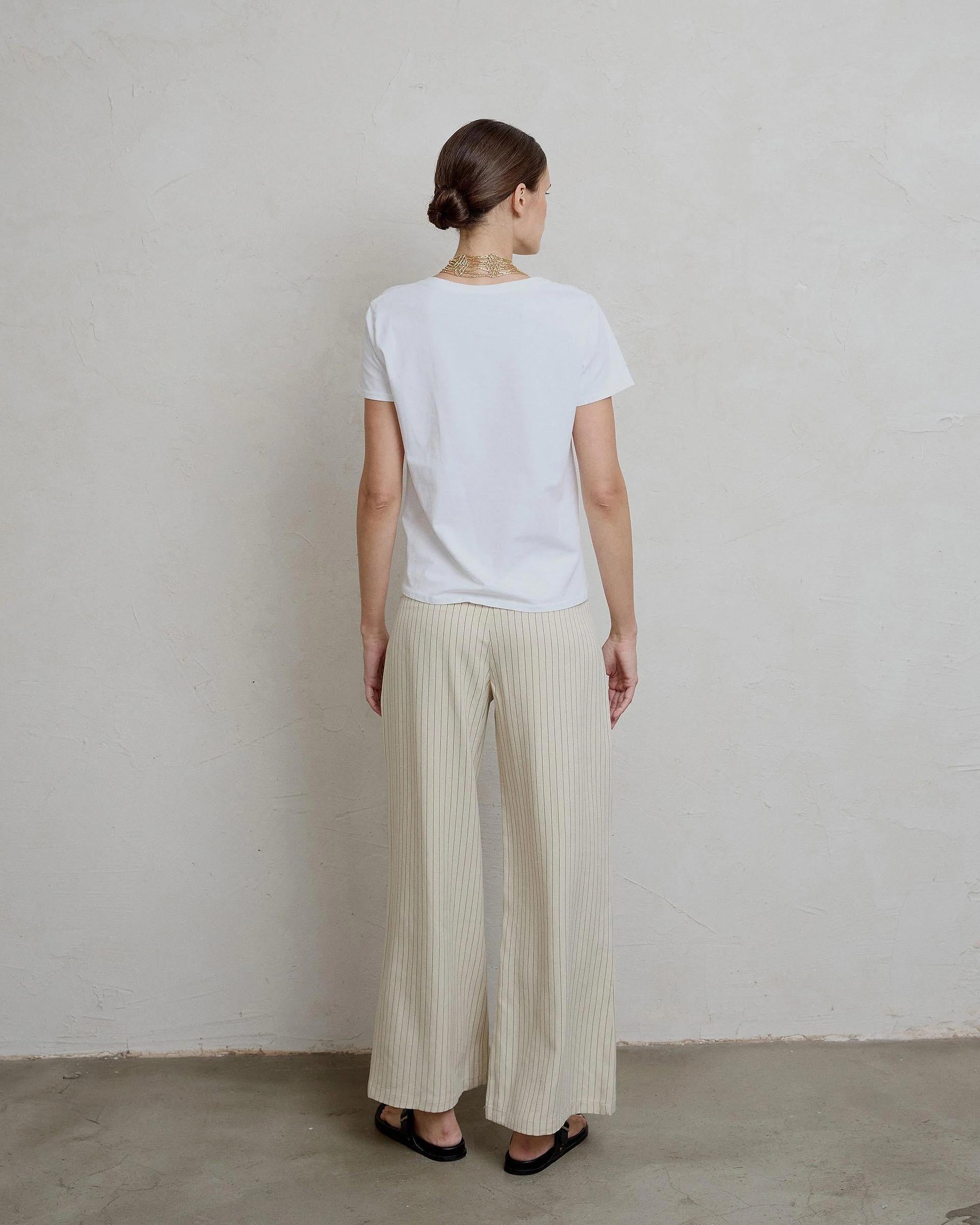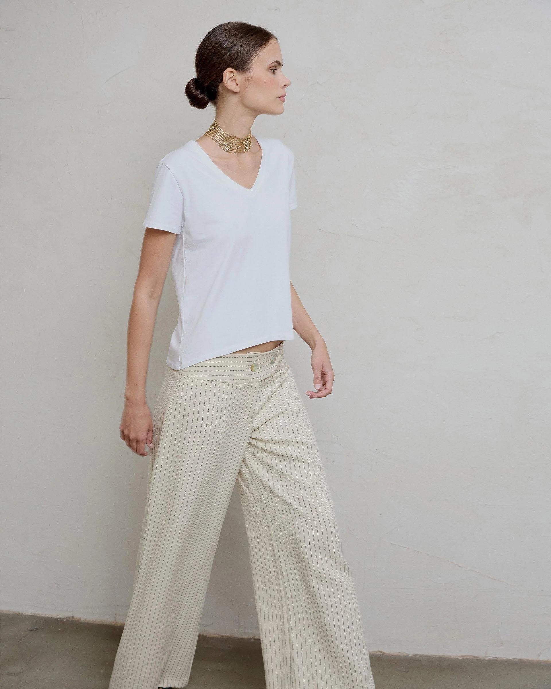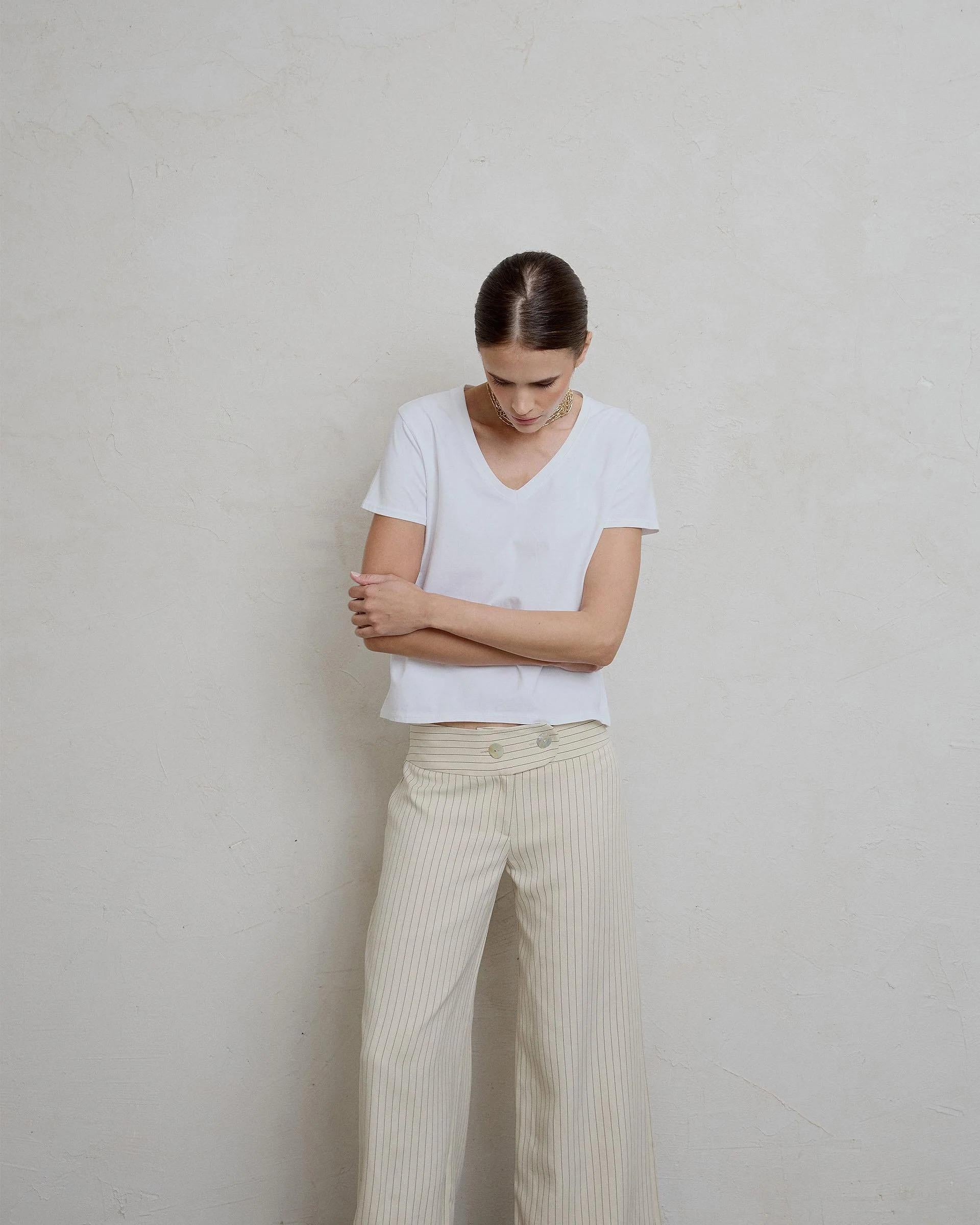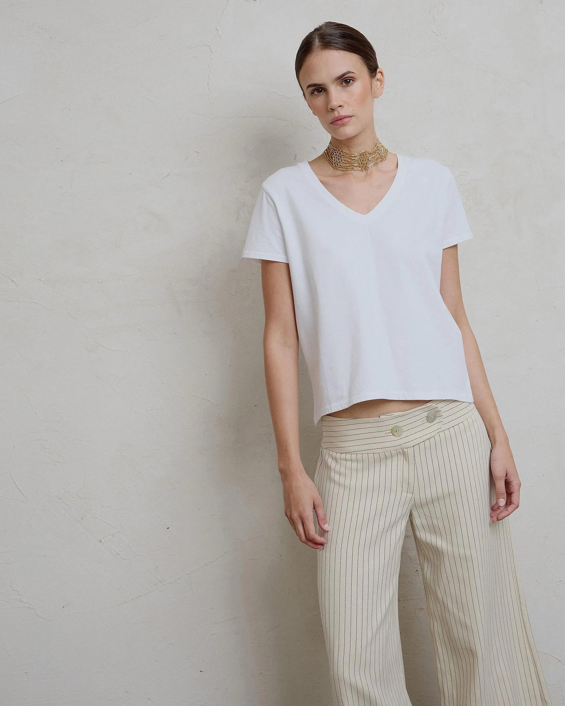 Camiseta de manga corte y corte en la espalda en color blanco.