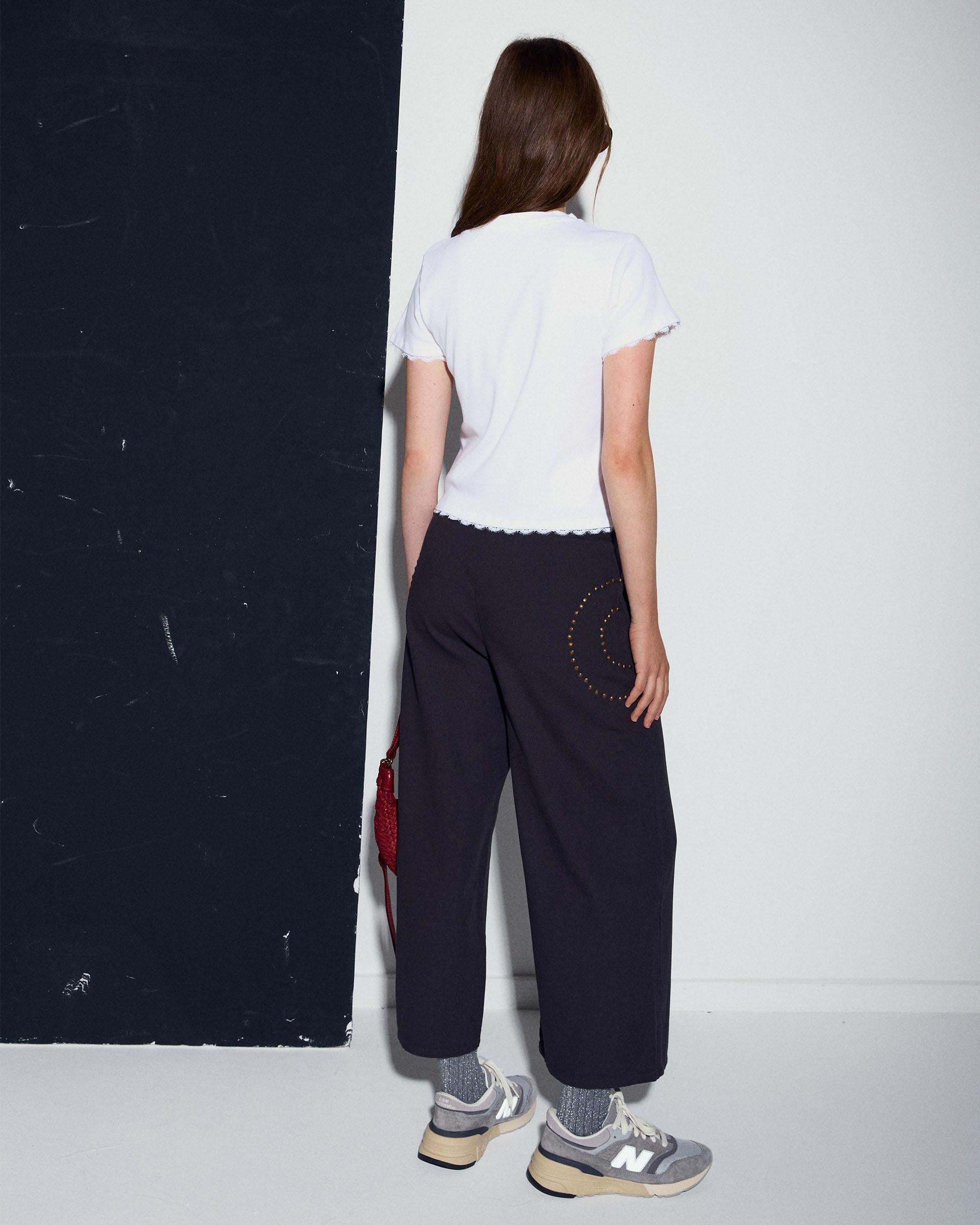 Camiseta de manga corta de color blanco con detalle de puntillas.