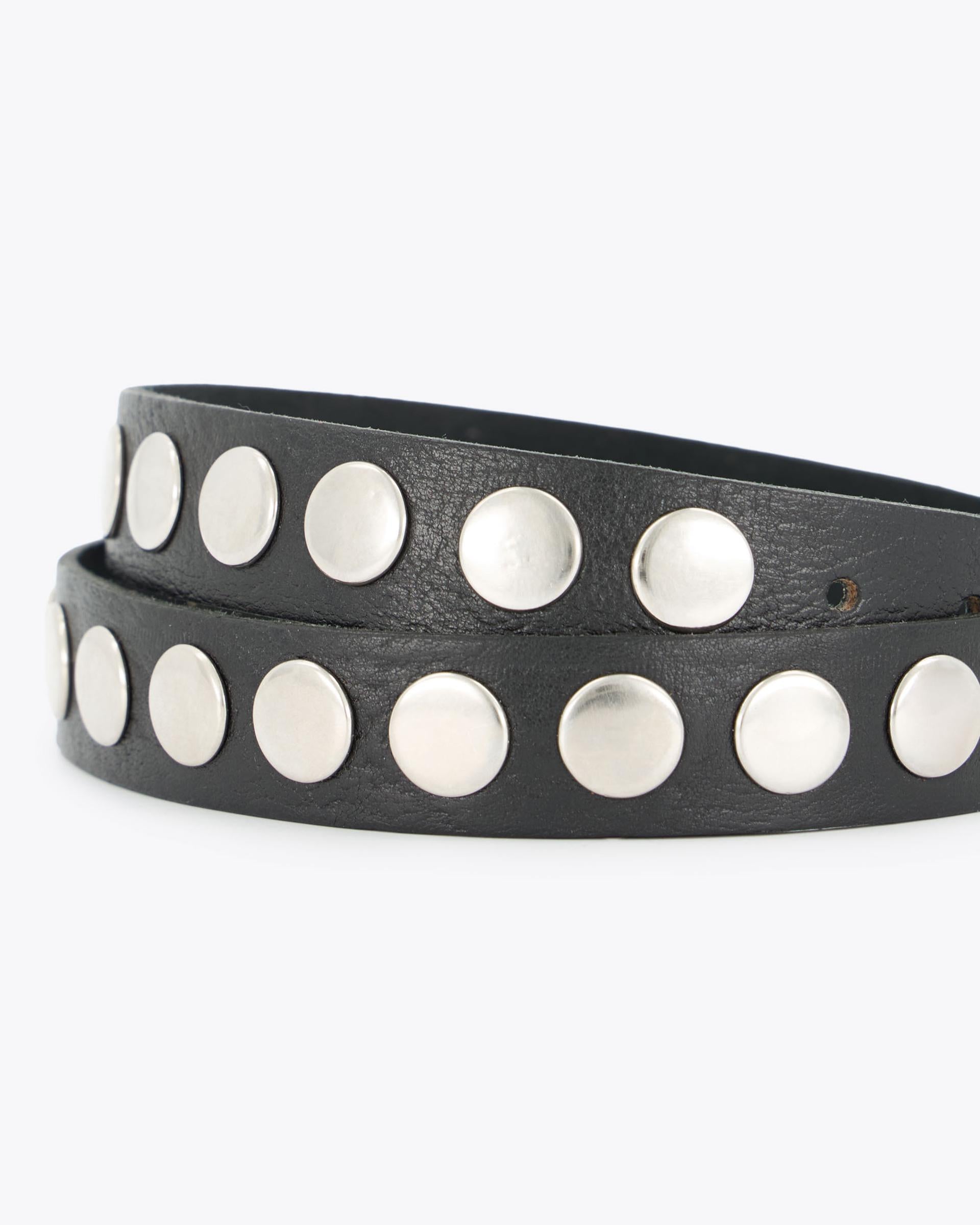Cinturón Piel Fino Tachuelas Redondas Negro