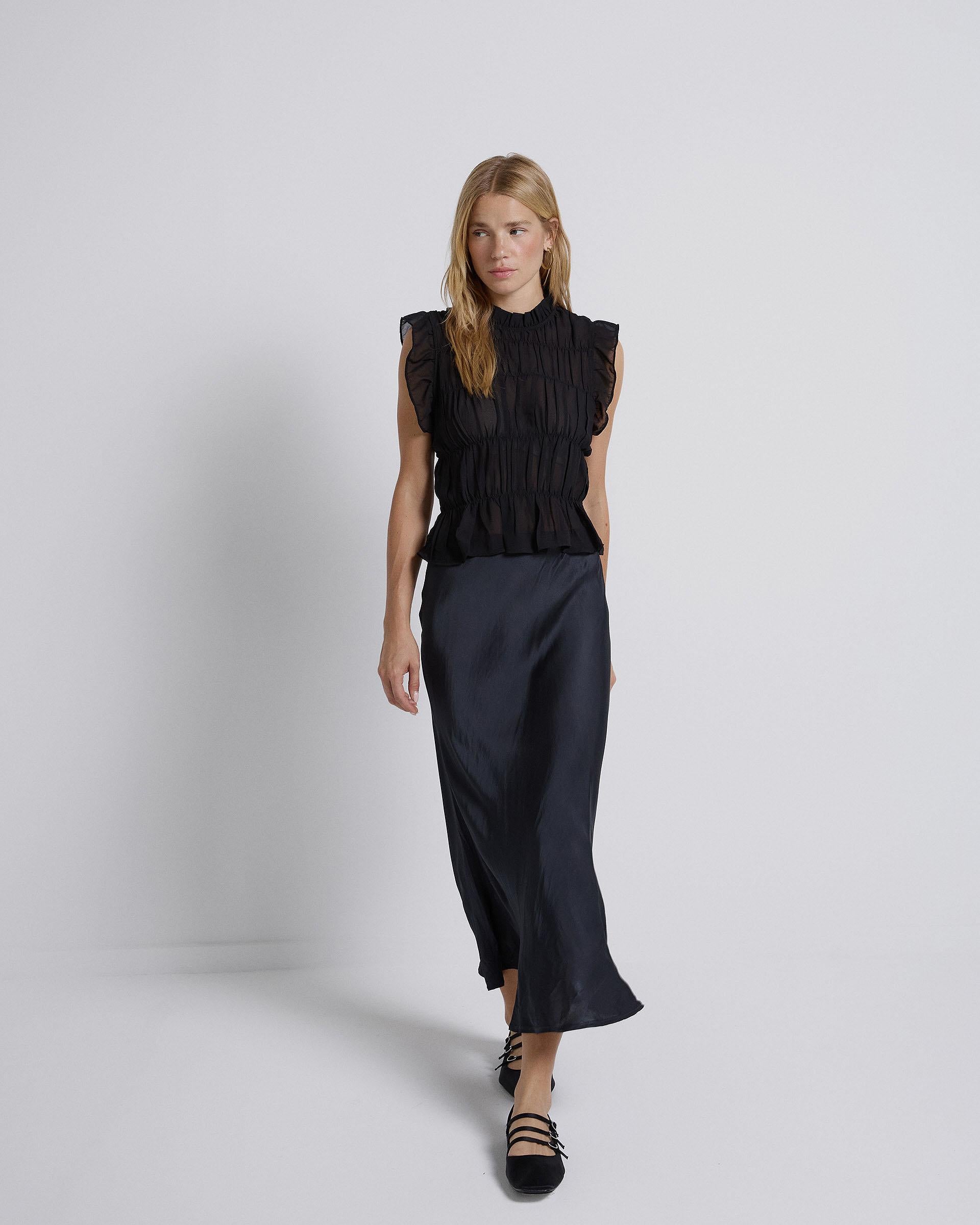 Falda Evase Satinada Antracita