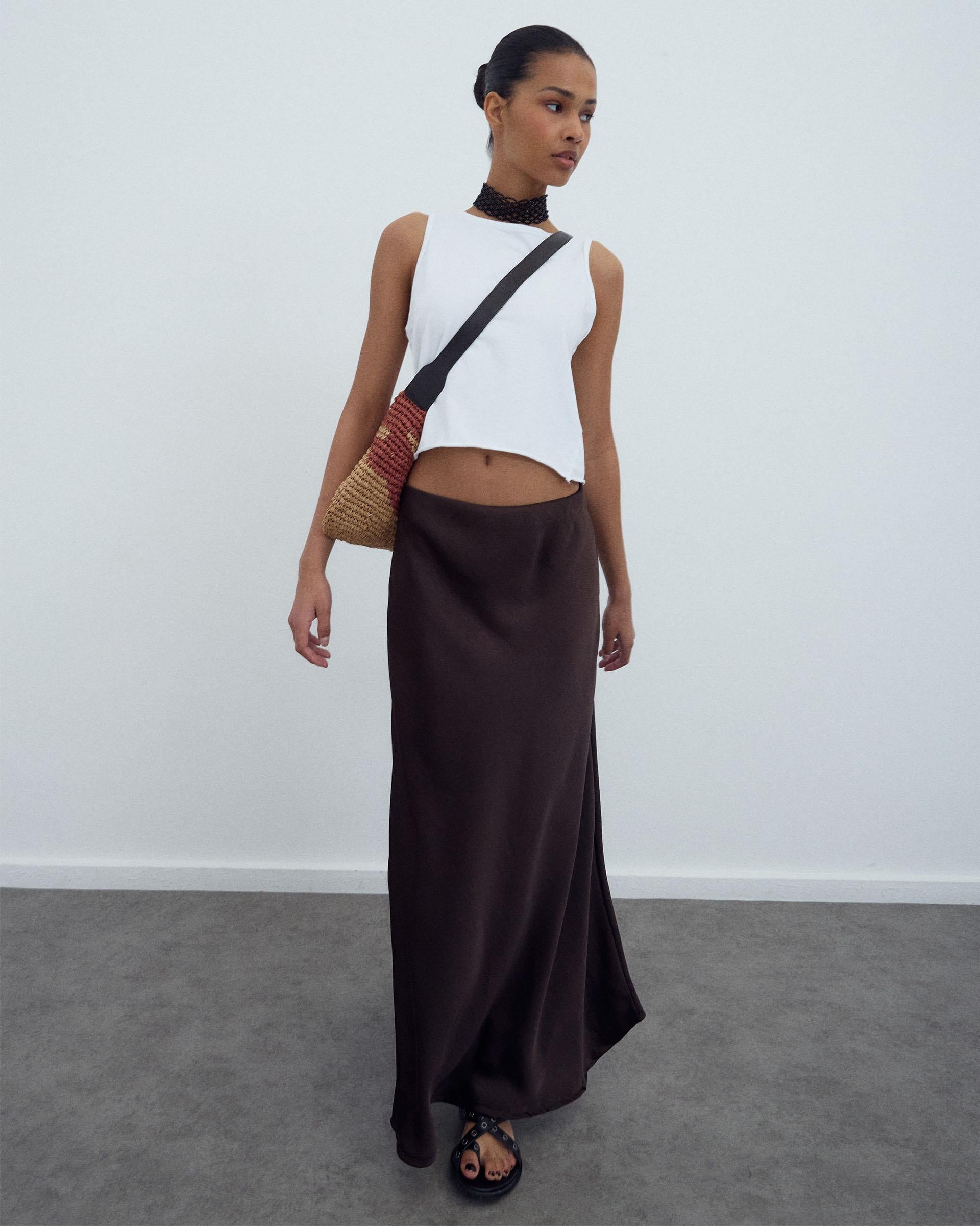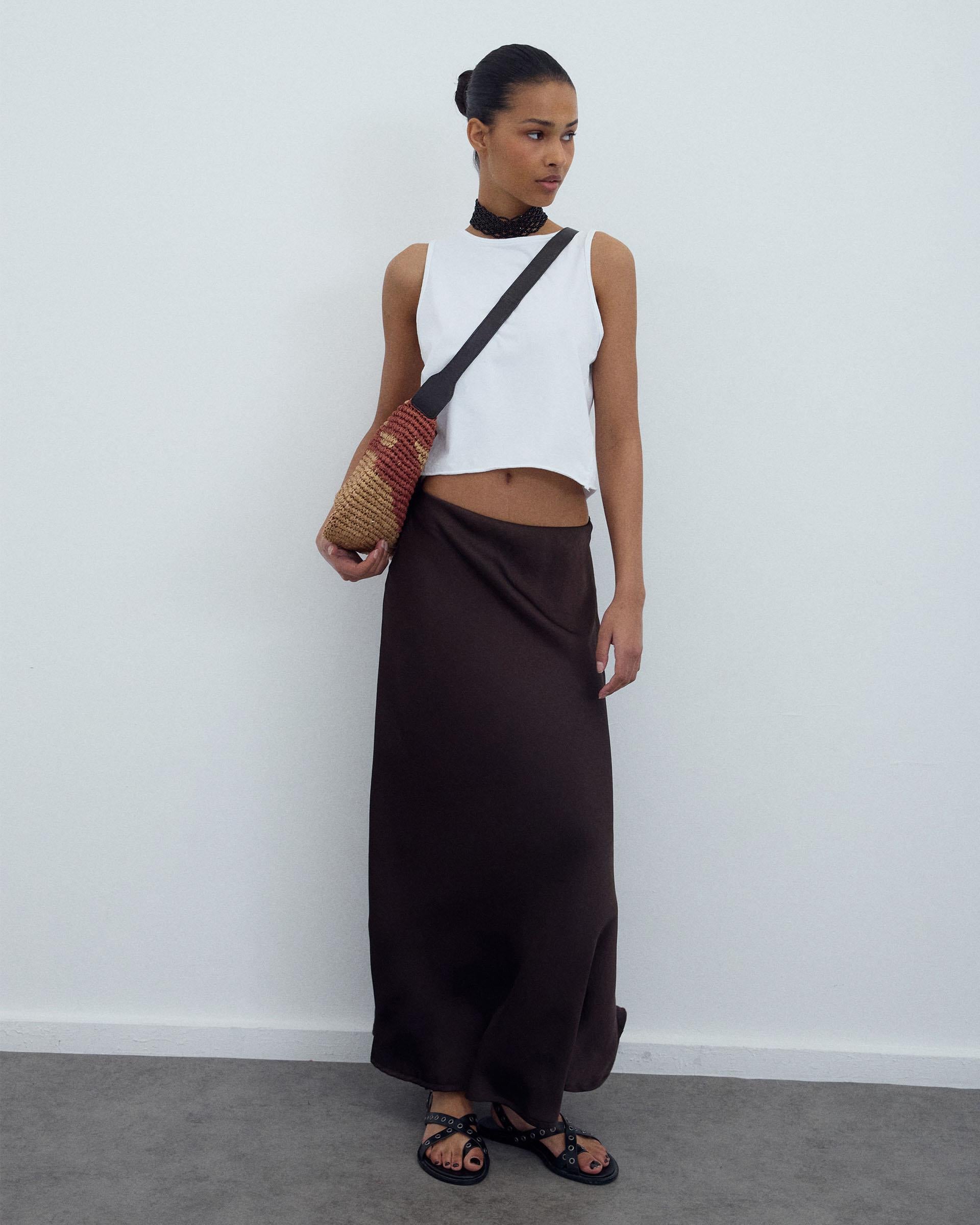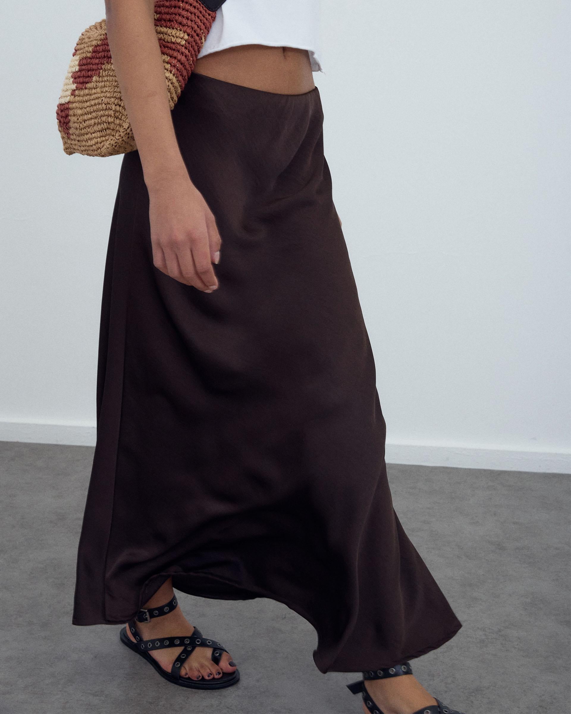 Falda Fluida Satinada Marrón