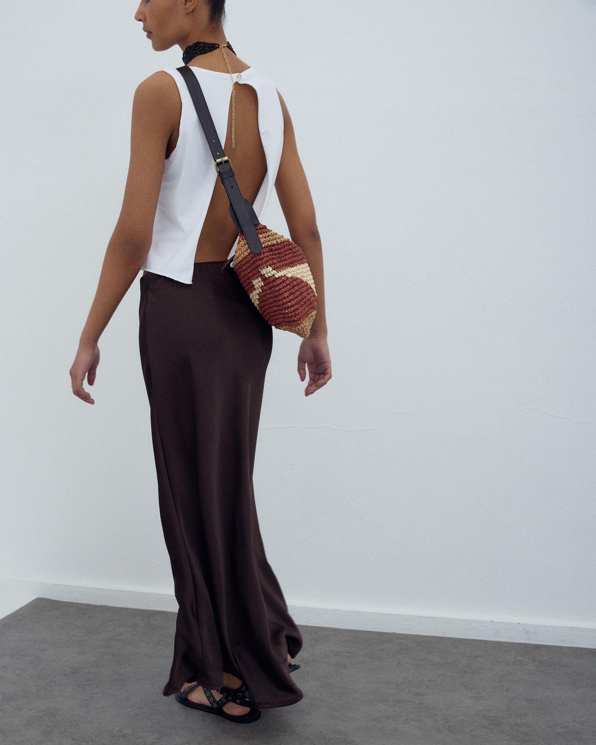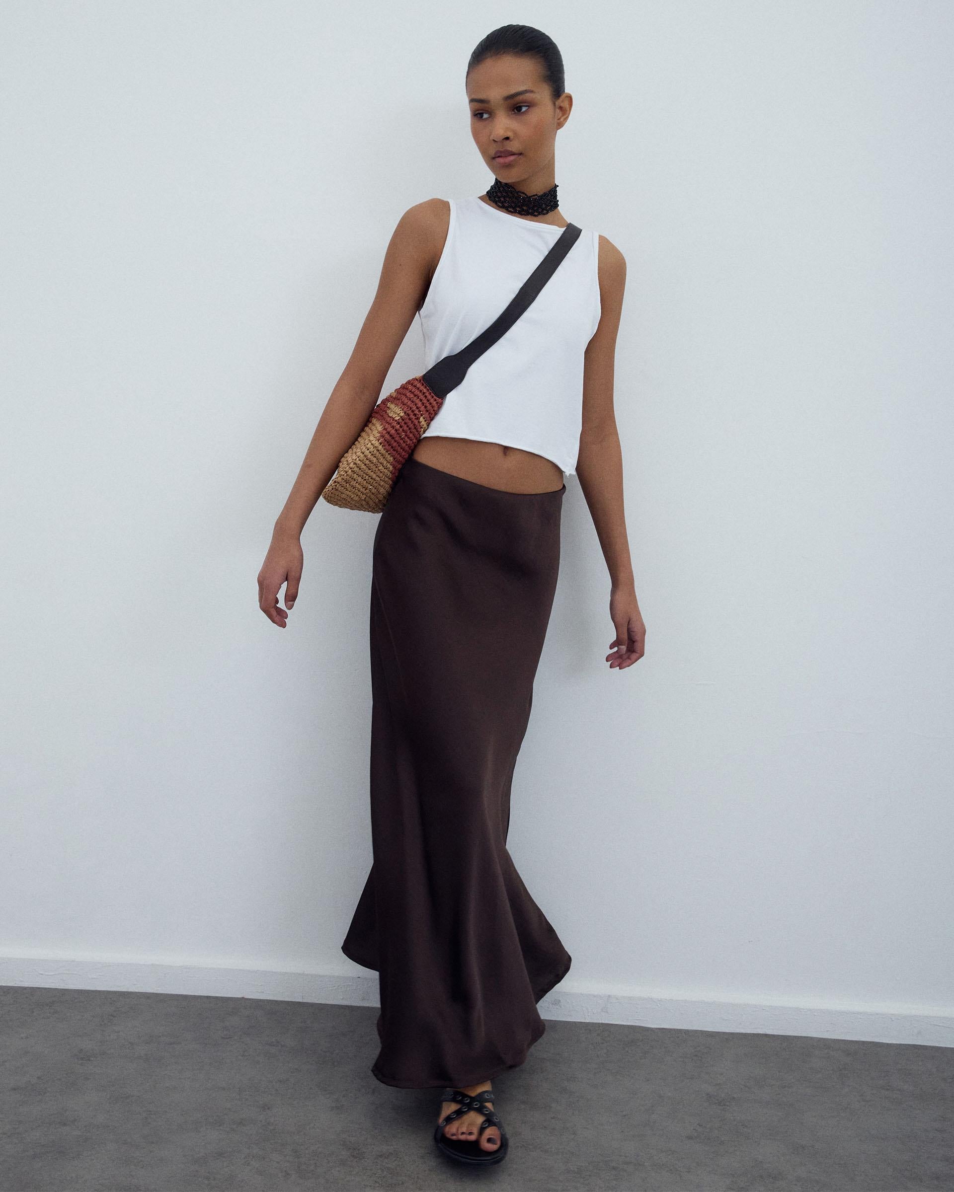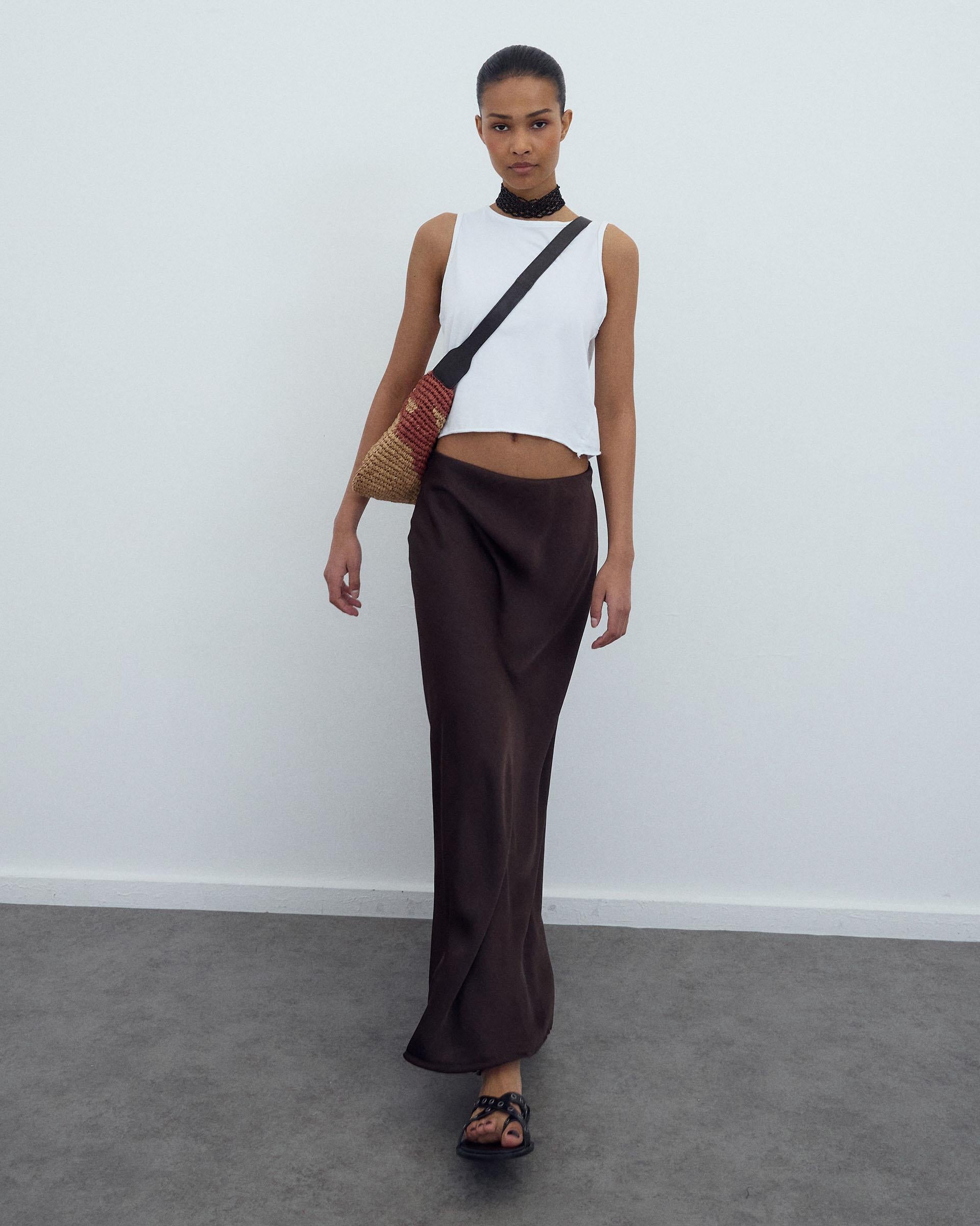 Falda Fluida Satinada Marrón