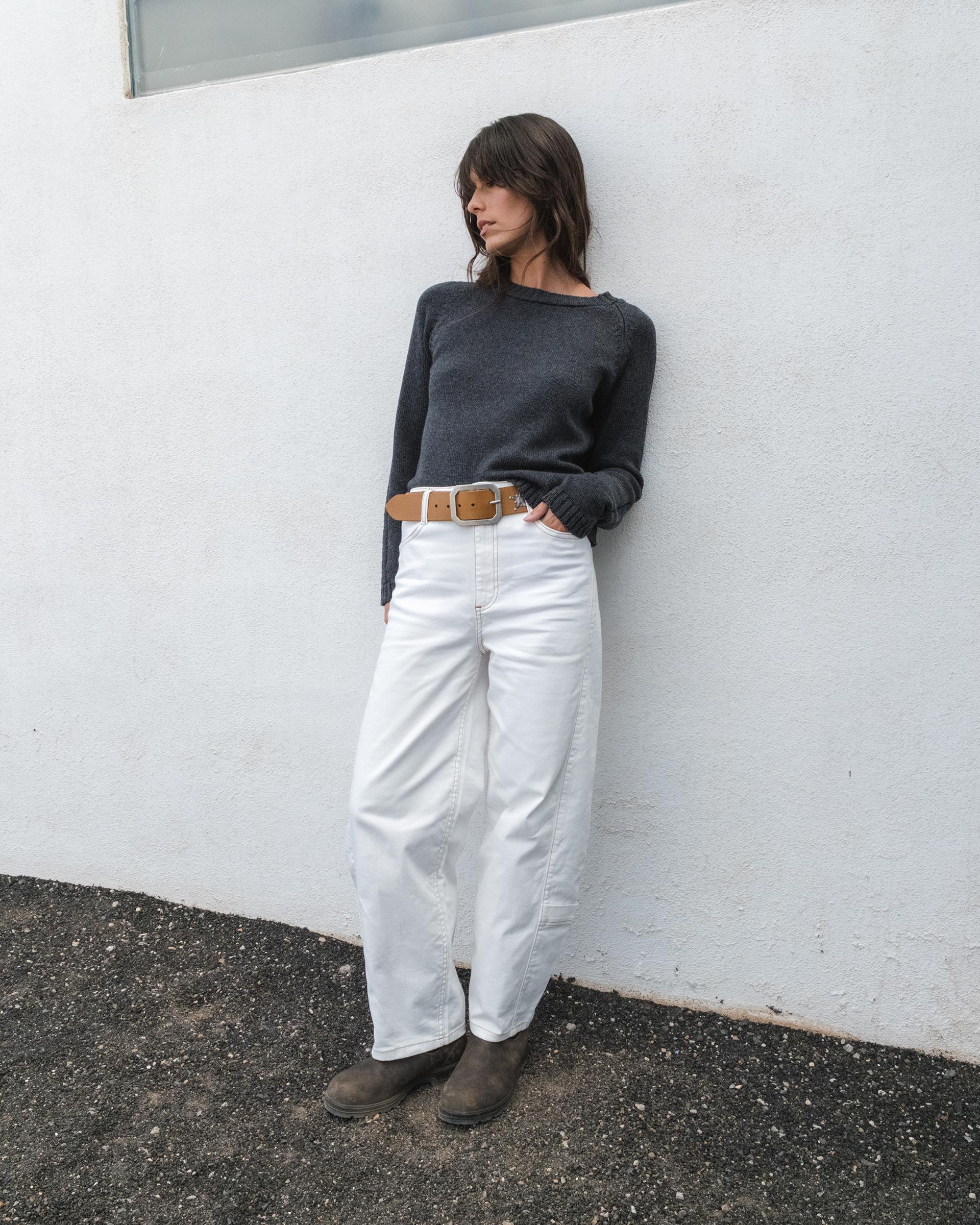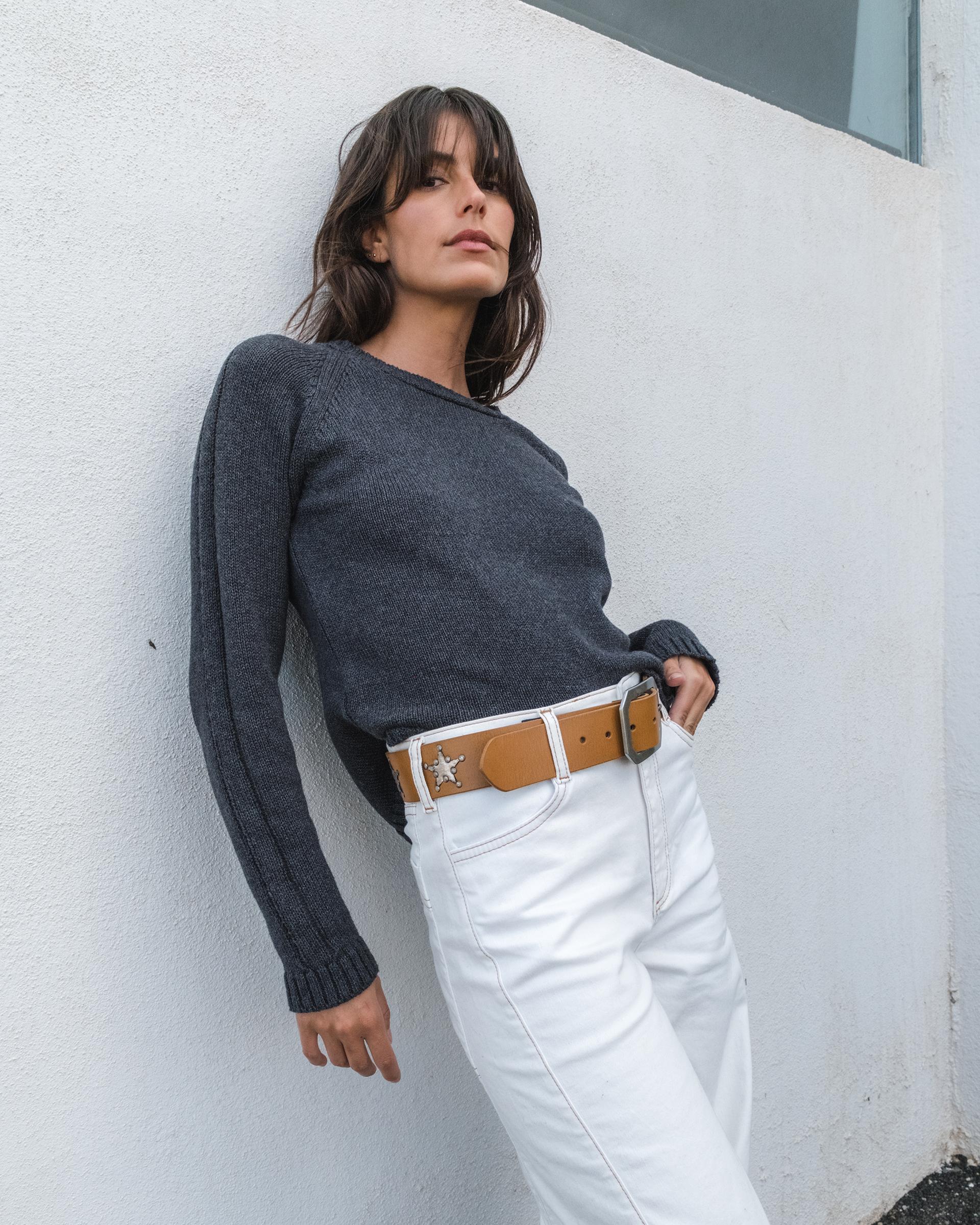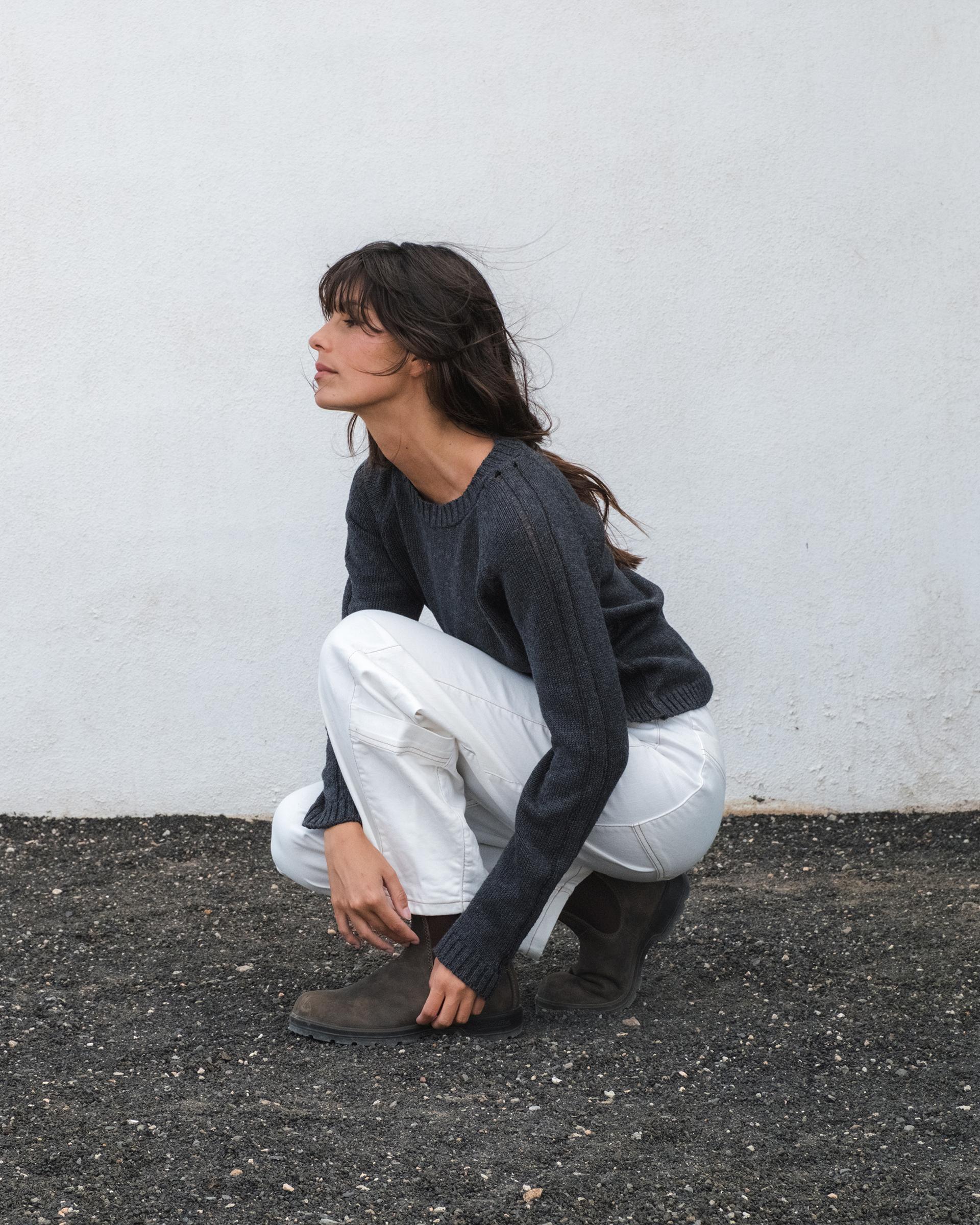Jersey de punto de cuello redondo, con aberturas en las mangas.