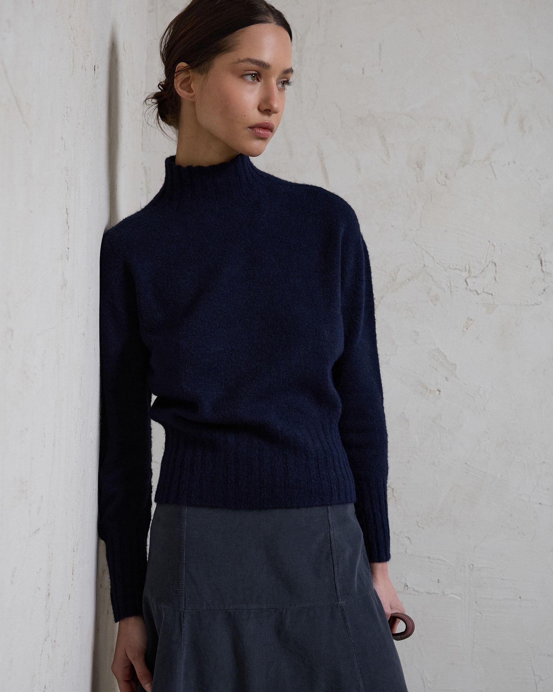 Jersey Cuello Alto Rib Azul Marino