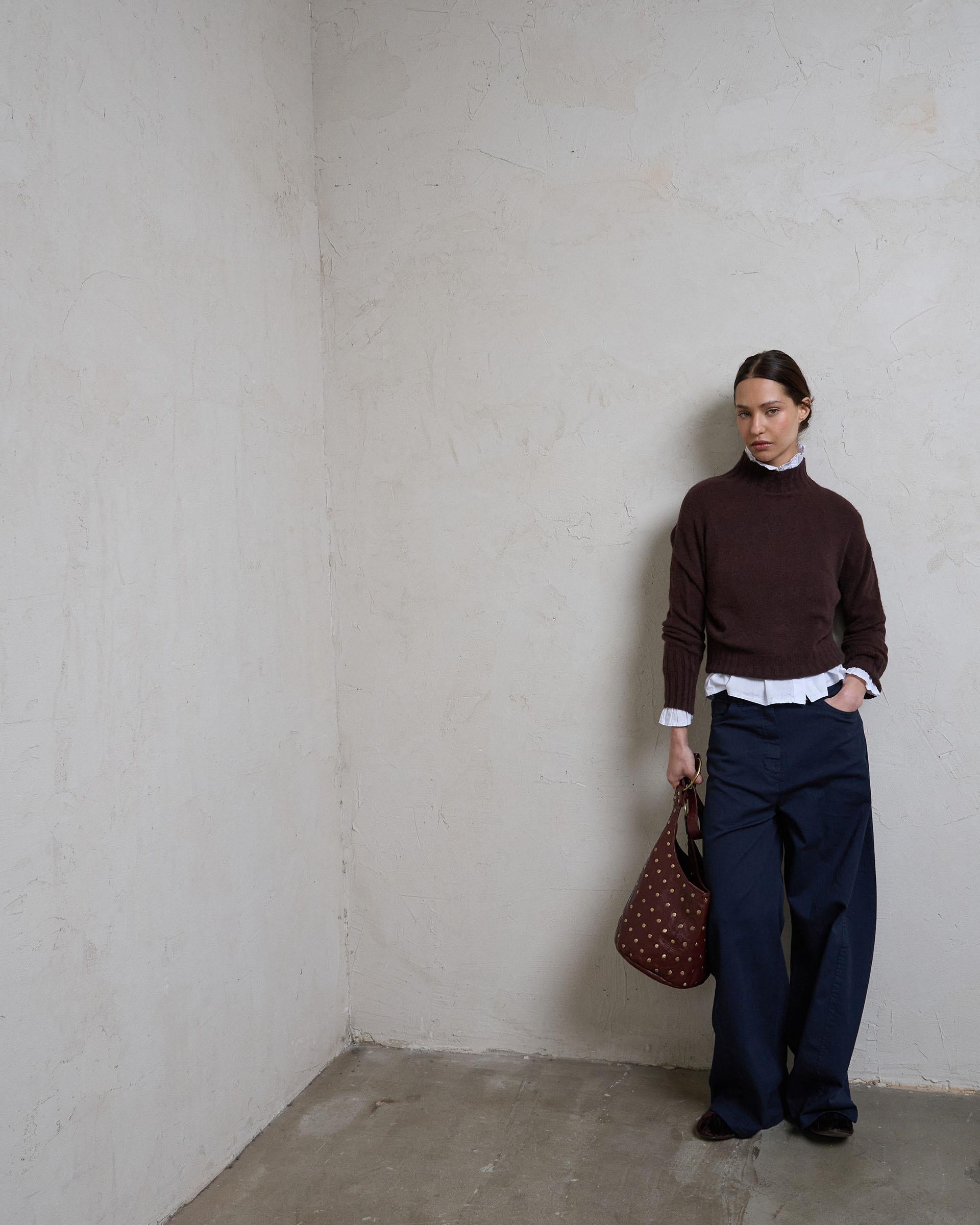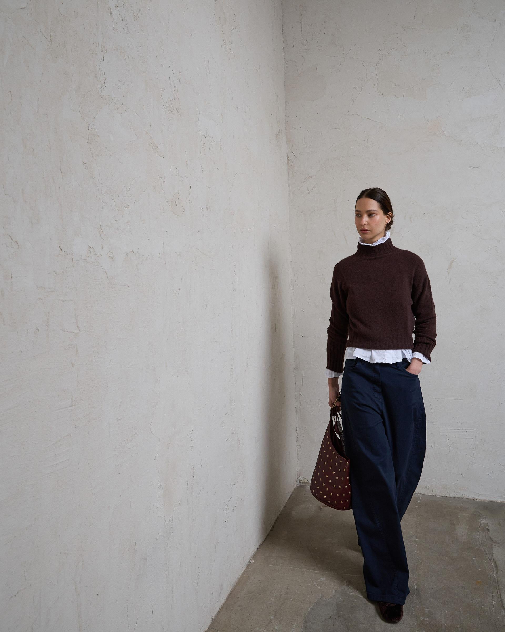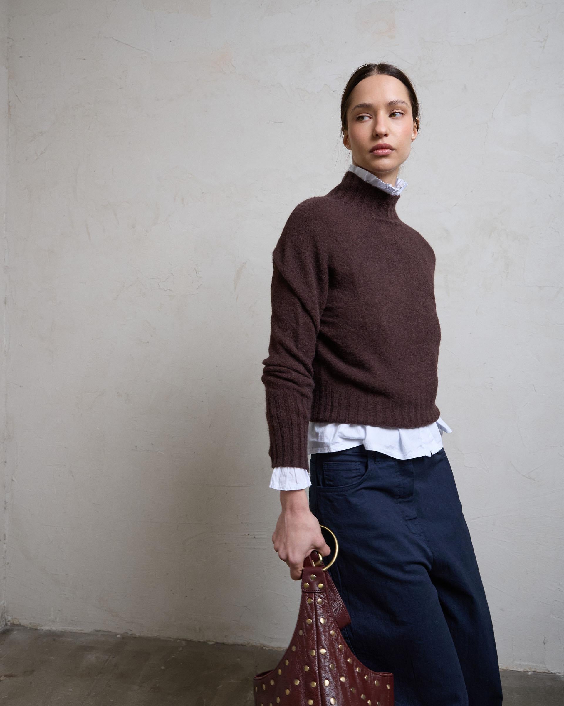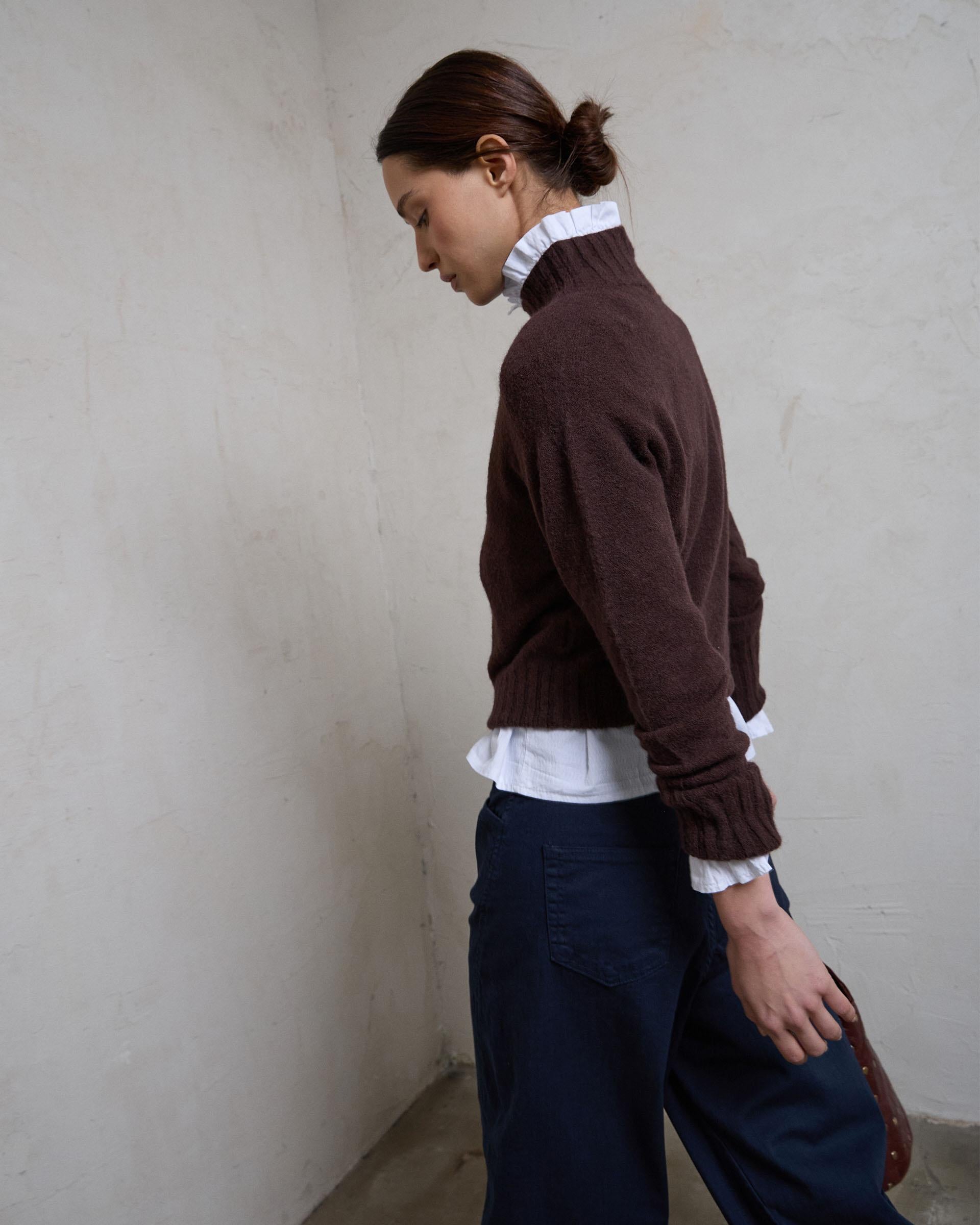 Jersey Cuello Alto Rib Marrón