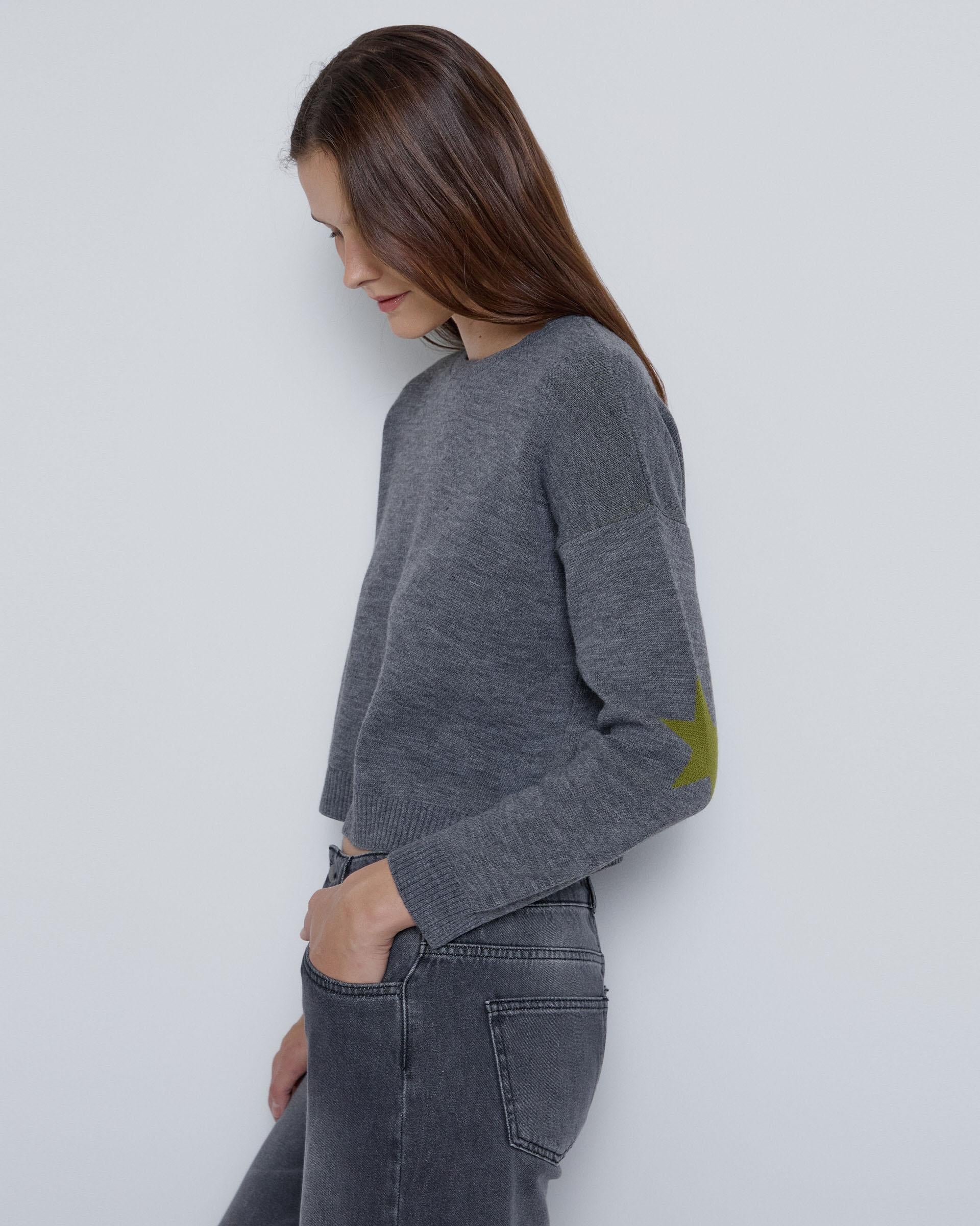 Jersey de punto con cuello redondo y estrellas en los codos en contraste.