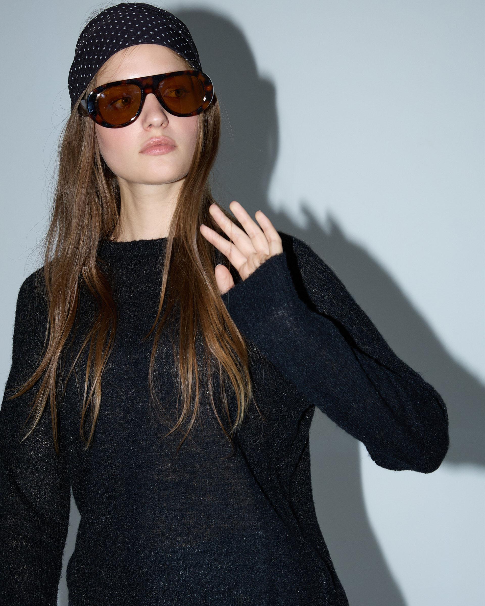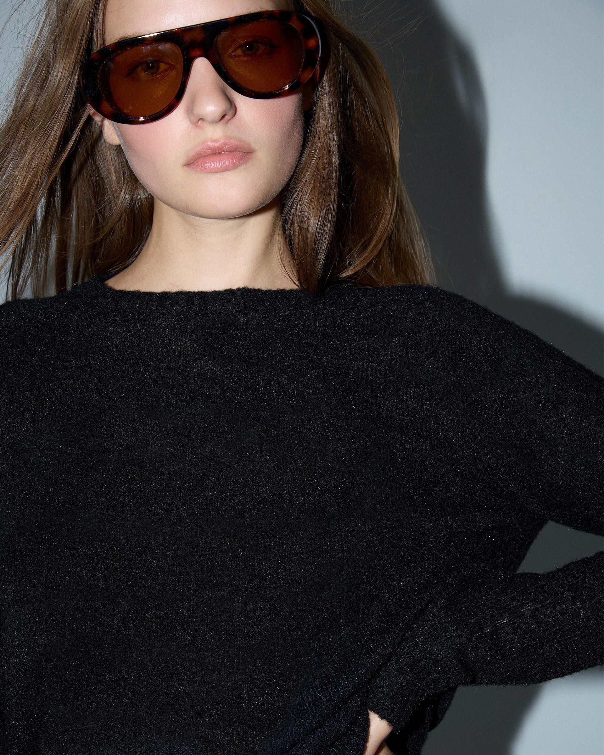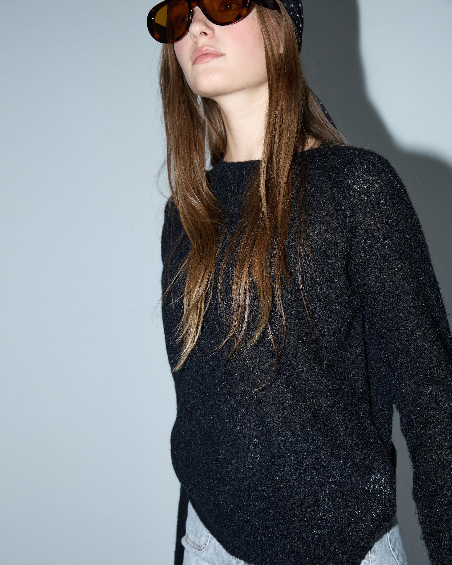 Jersey de punto de color negro con cuello redondo.