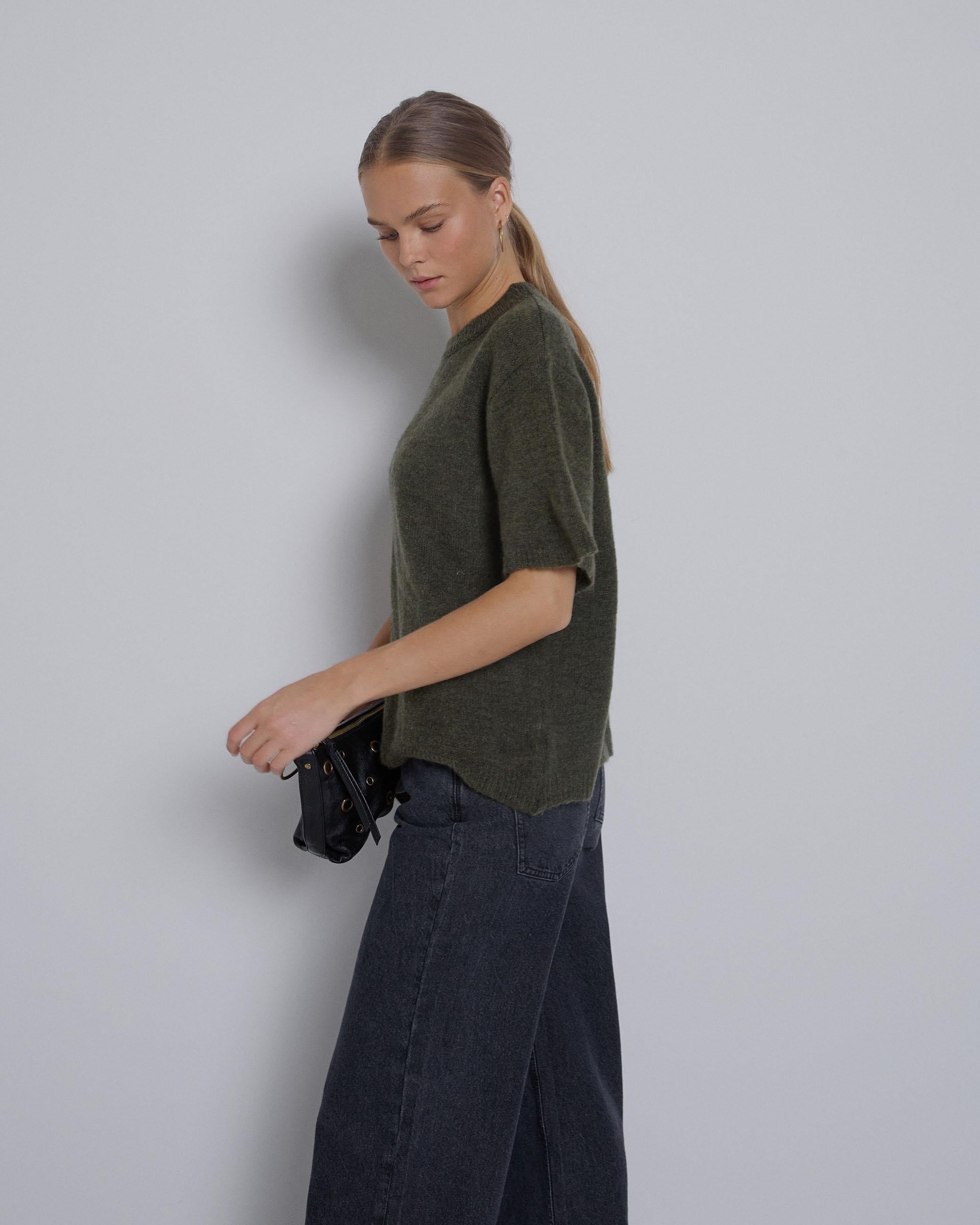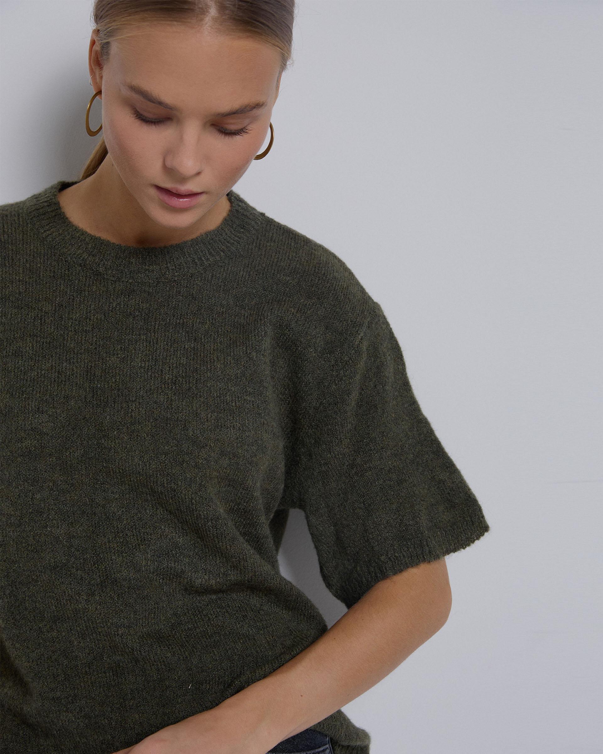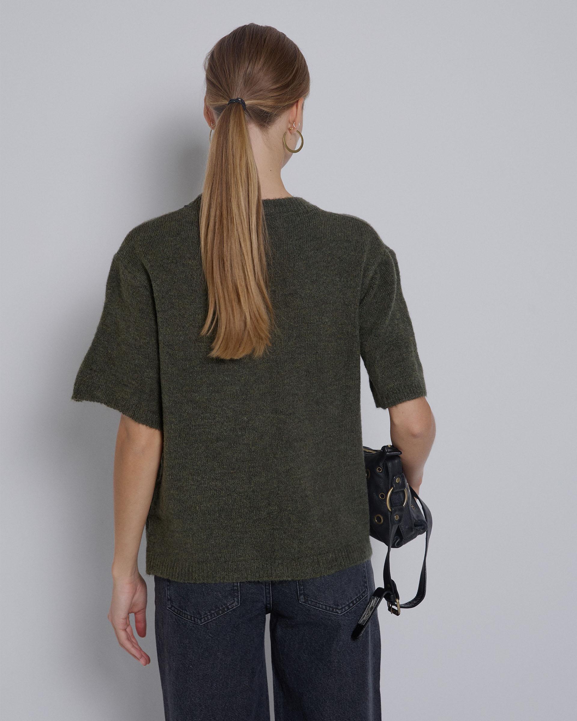 Jersey de punto de manga corta y cuello redondo, de color verde oscuro.