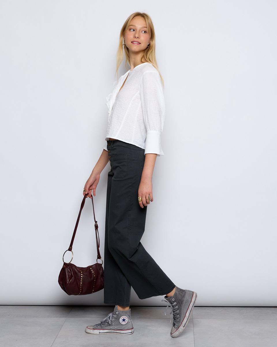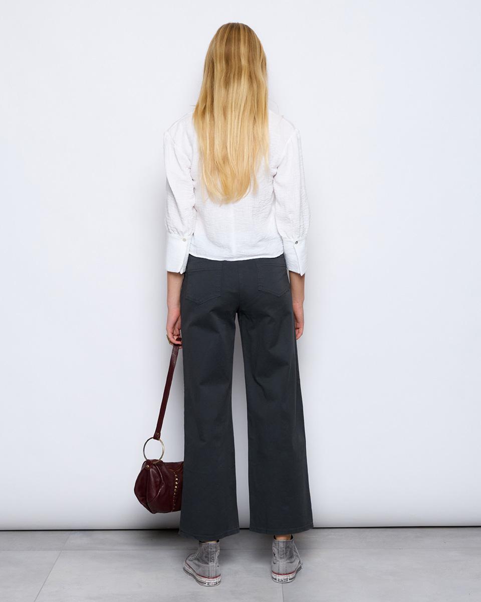 Pantalón con bolsillos plastón abotonado de corte recto con trabillas en la cintura de color antracita.