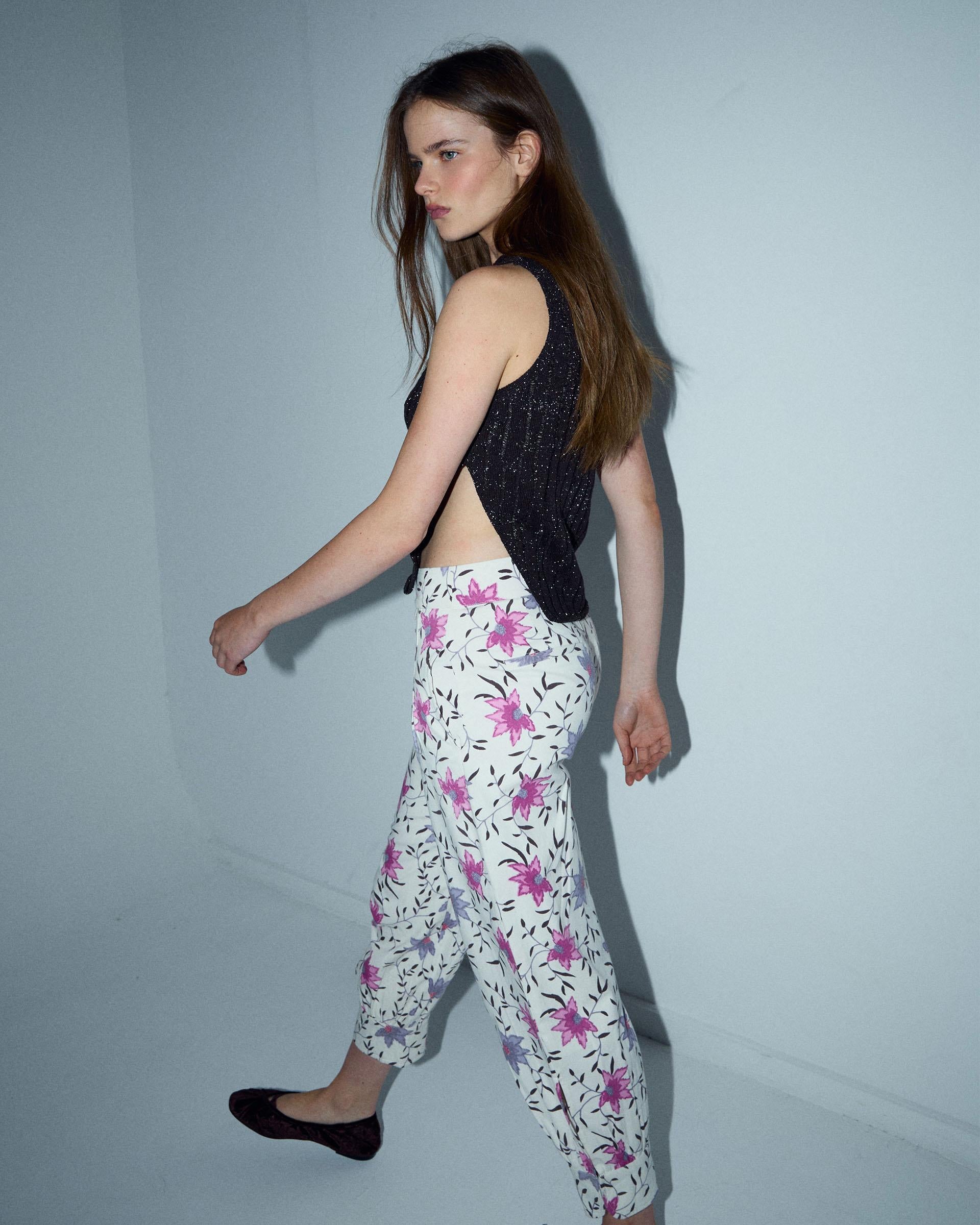 Top de punto con lurex de cuello redondo y sin mangas, en color marrón.