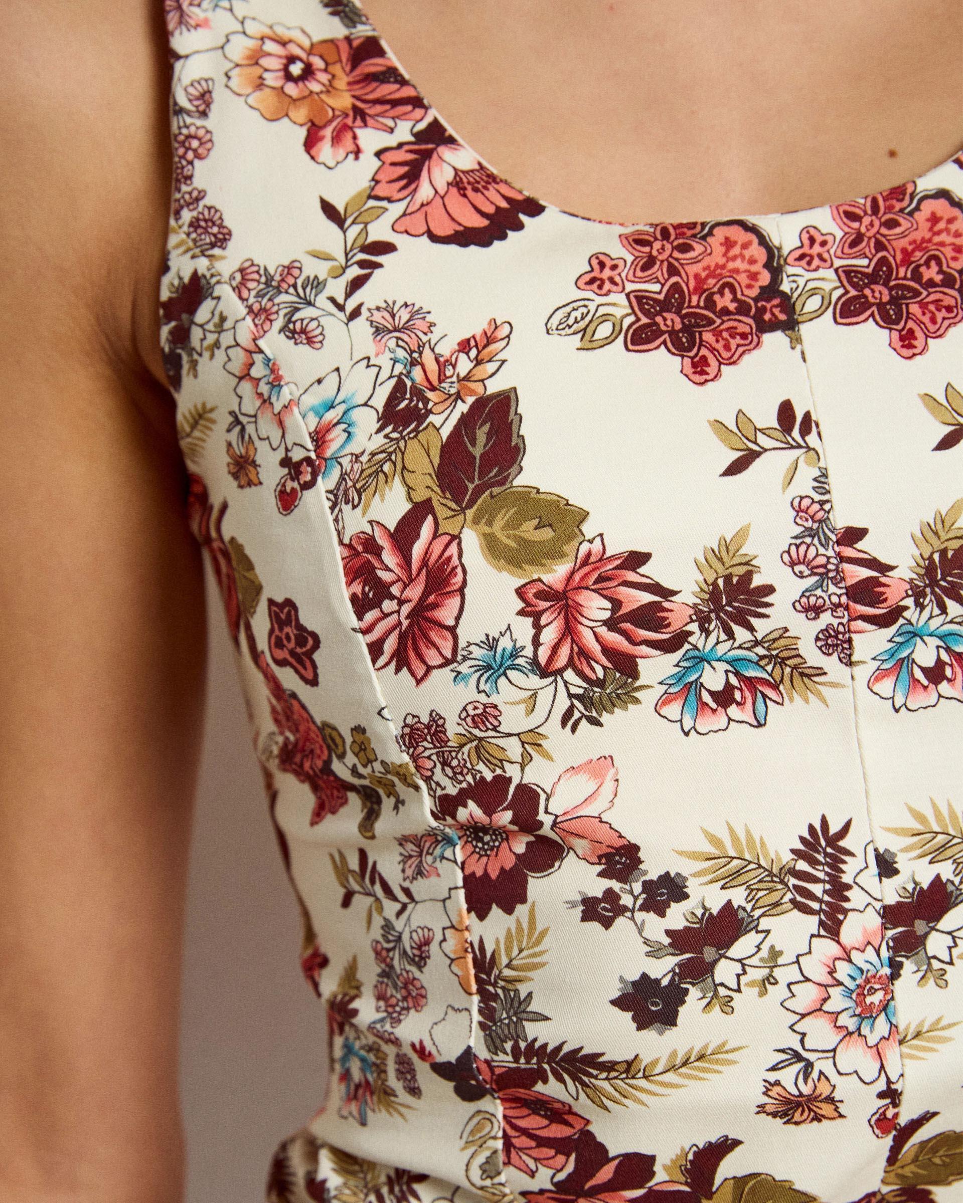 Top de tirantes tipo corsetero con estampado floral de colores.
