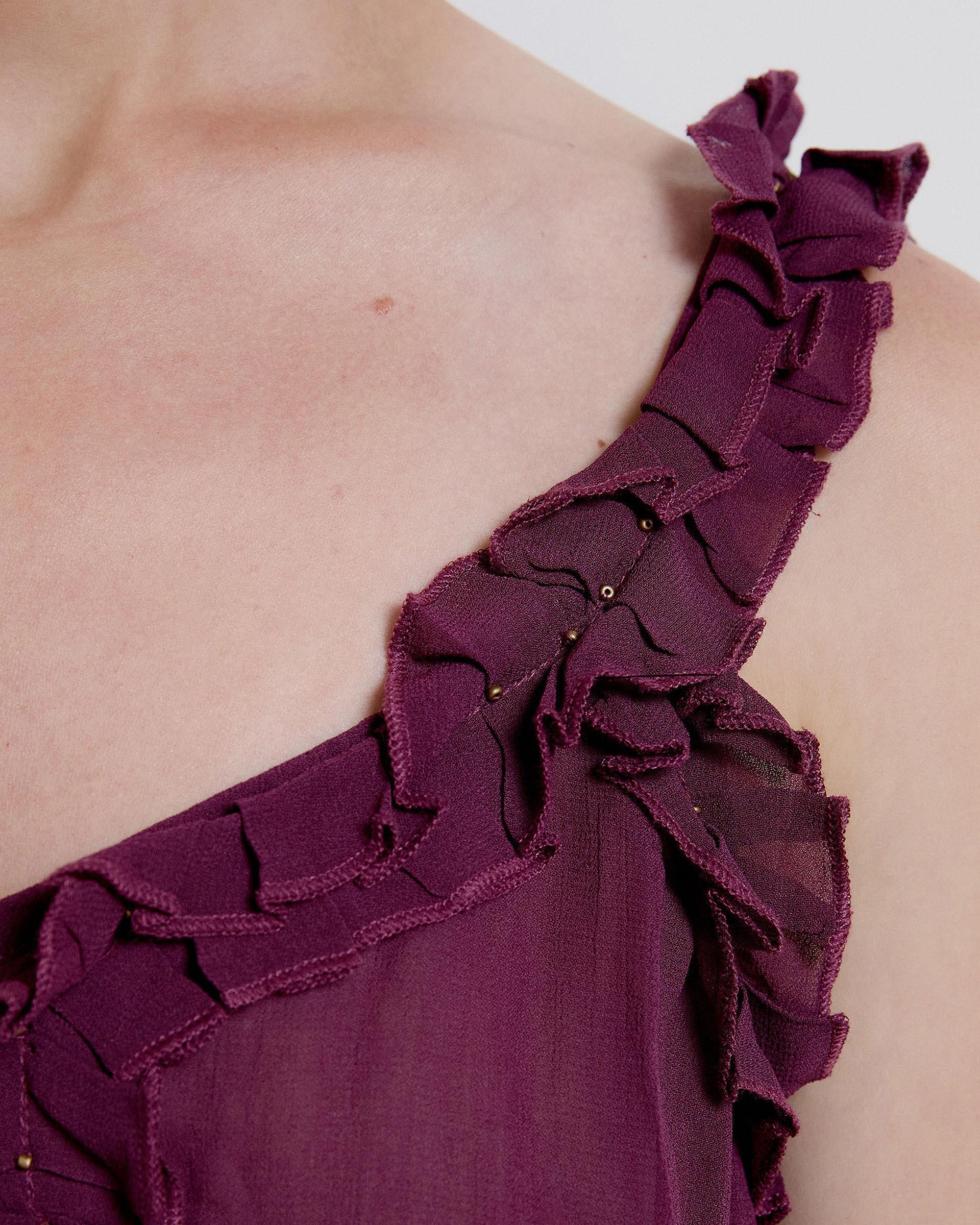 Top Escote V Volante Morado
