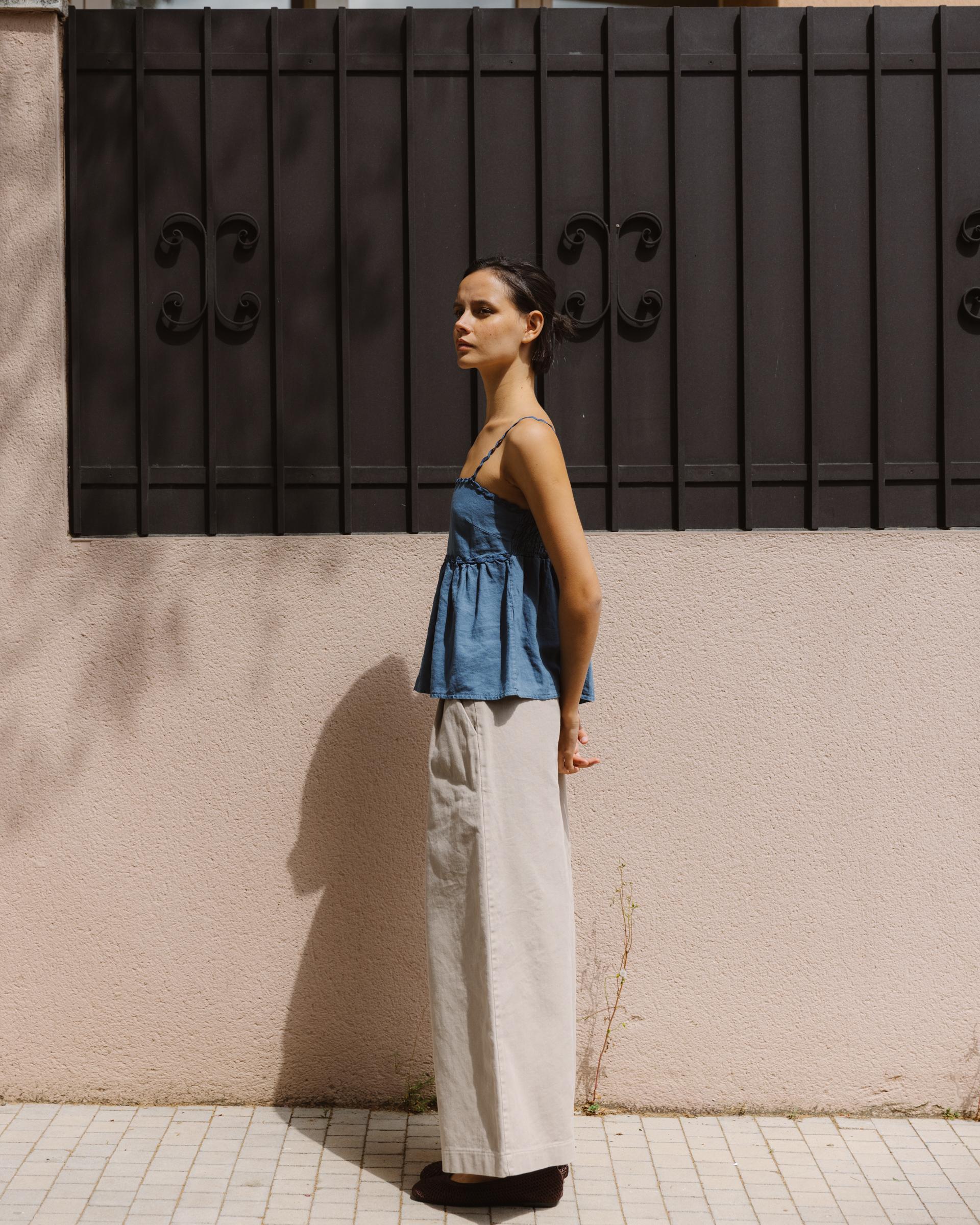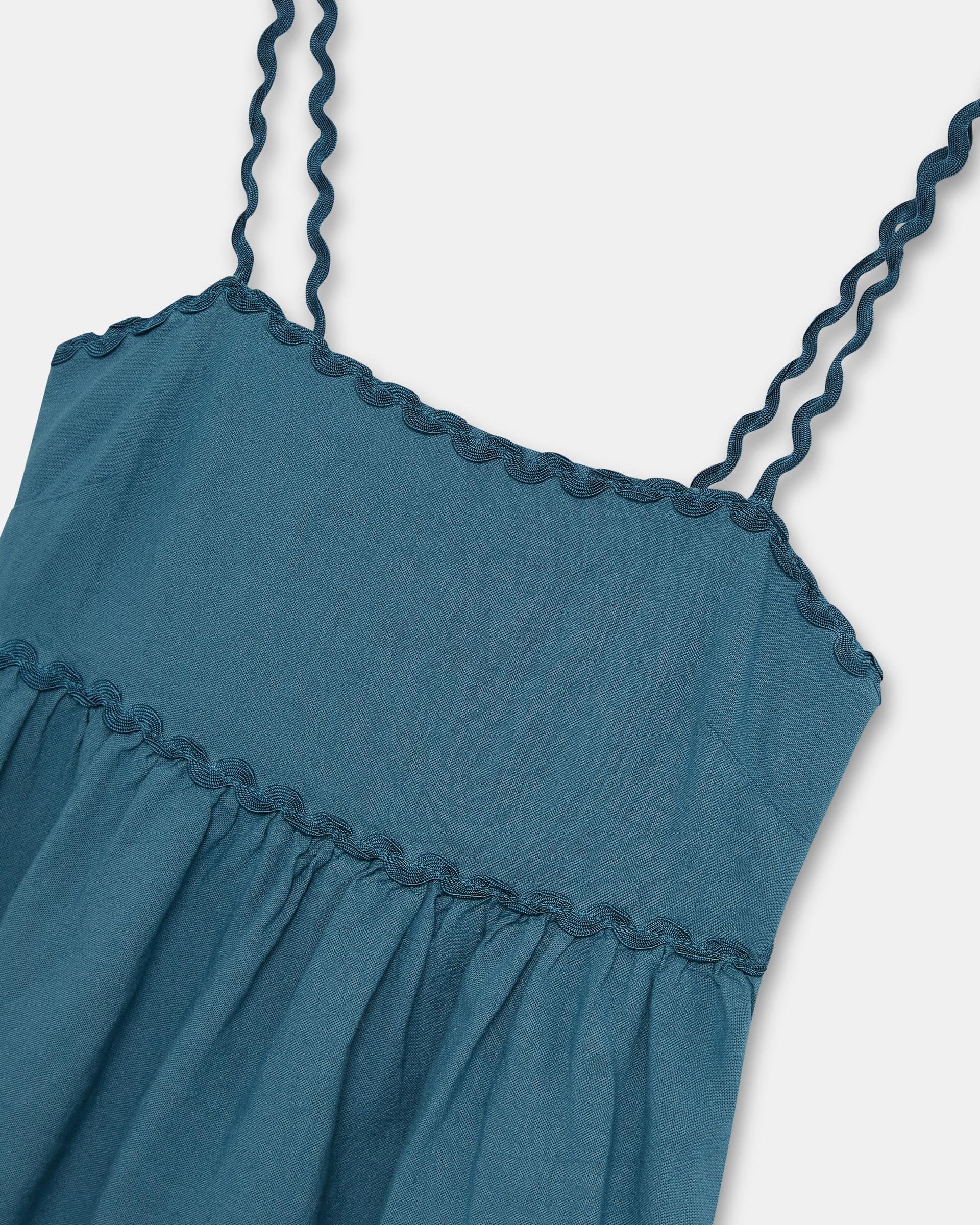 Top de tirantes en color azul oscuro con detalle de ondas.