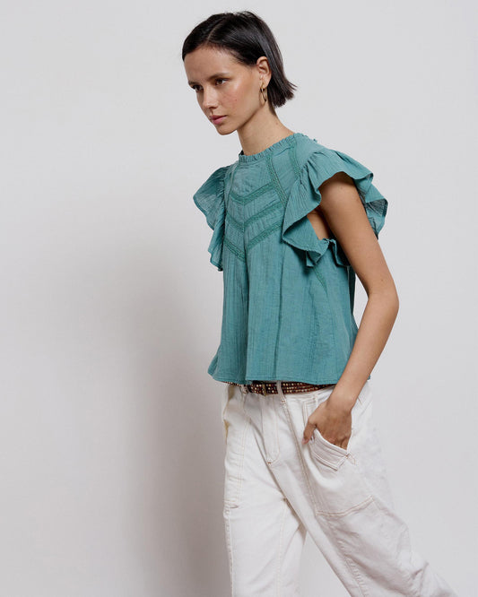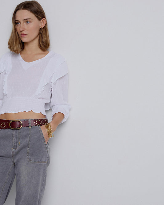 • Blusa Honeycomb com gola franzida e acabamento cinzento