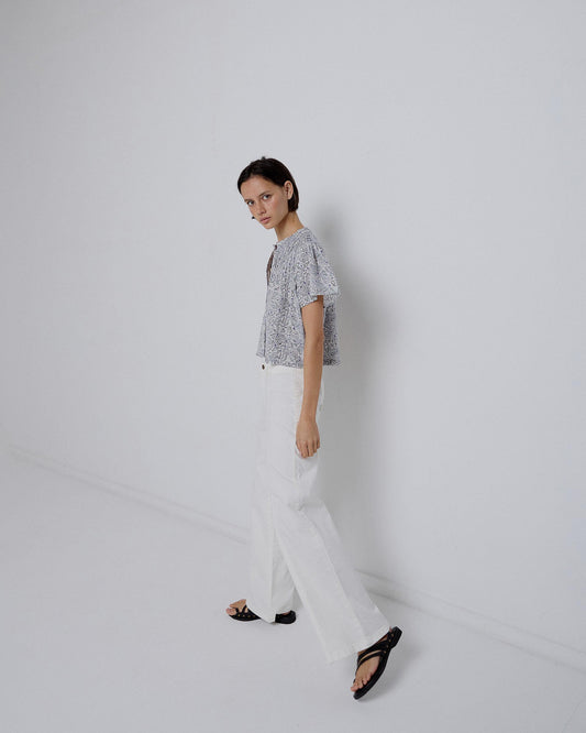 • Blusa azul com estampado floral