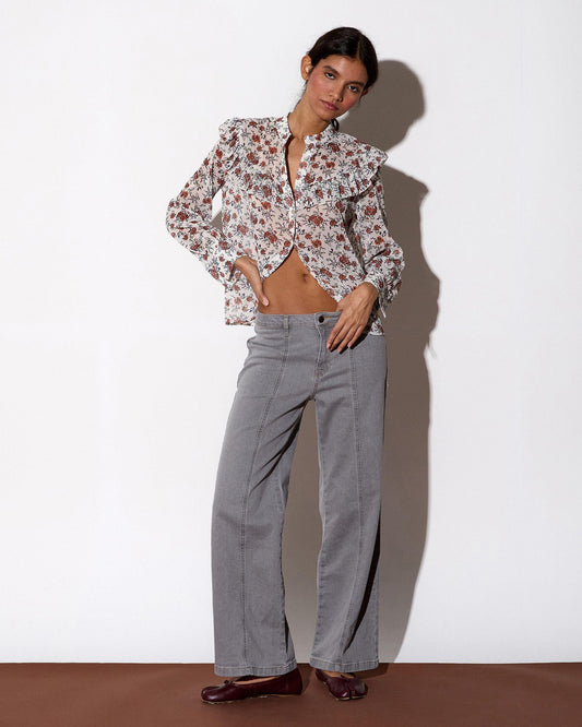 • Blusa Antracite Assimétrica com Babados