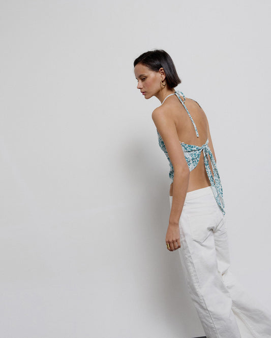 • Blusa com decote nas costas e estampa verde