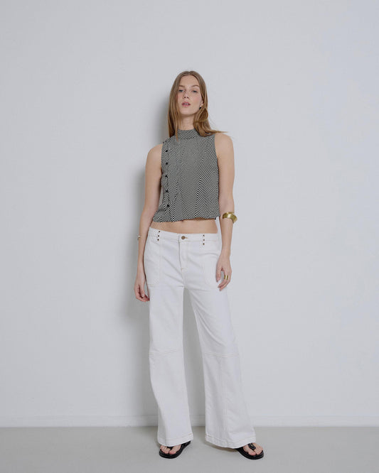 • Blusa preta com estampado às riscas