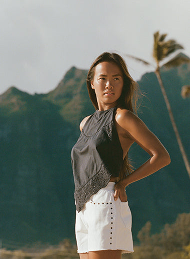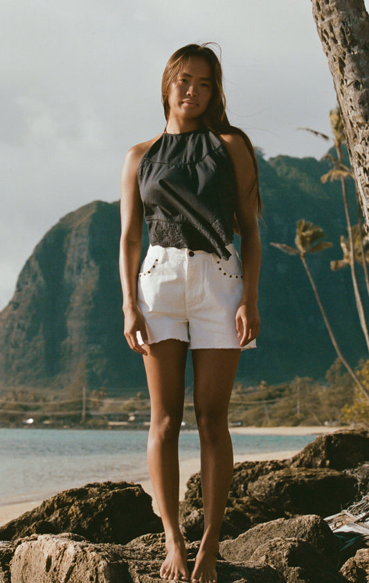 Blusa branca em renda com decote quadrado