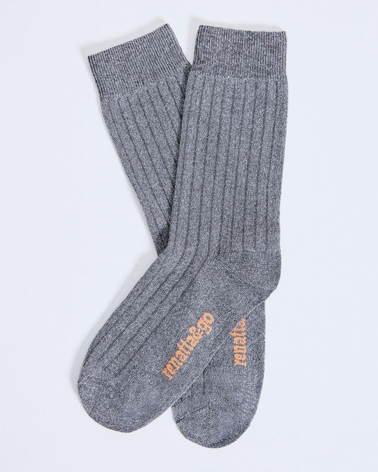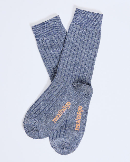 • Meias listradas de lurex azul escuro até à barriga da perna