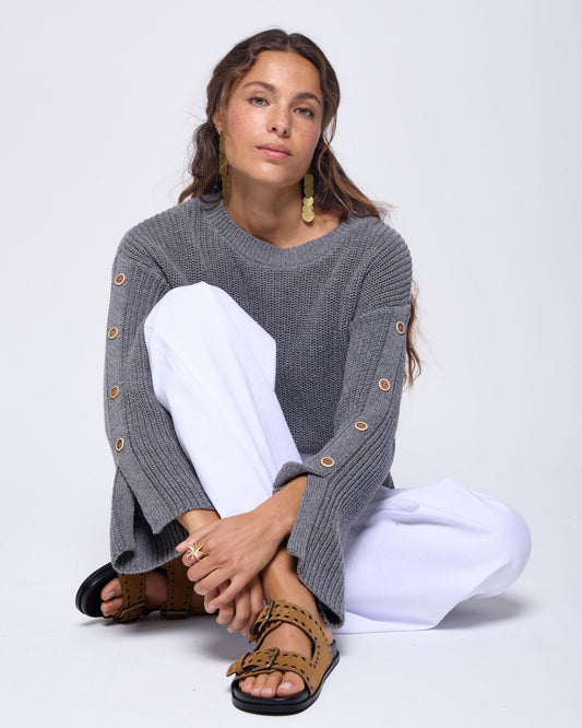 Calças de ganga com passadores de cinto e botões, antracite.