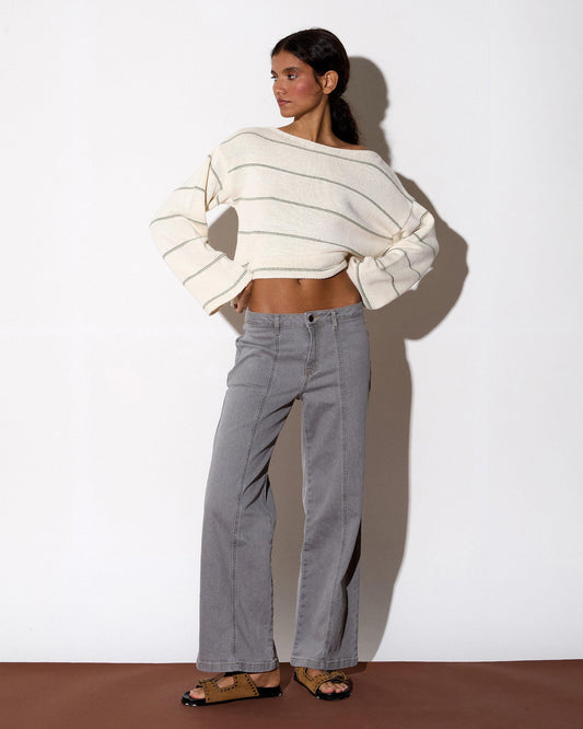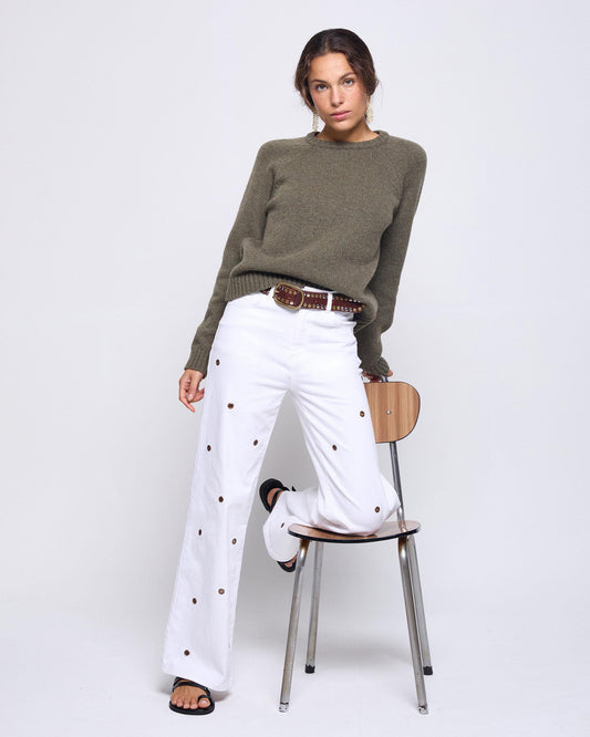 • Calças de ganga com bolsos, perna larga, costura azul.