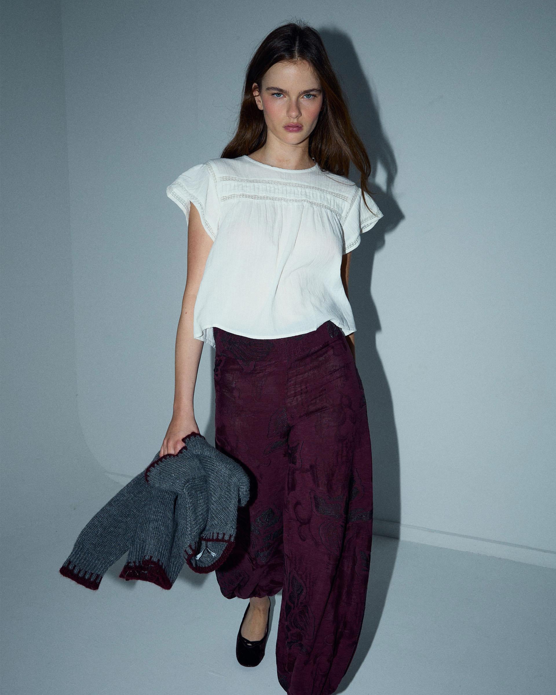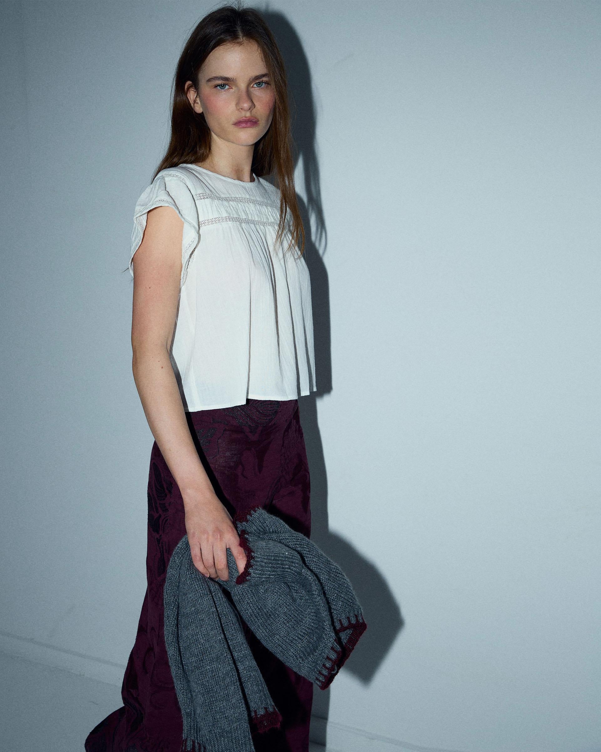 A modelo está usando tamanho S.