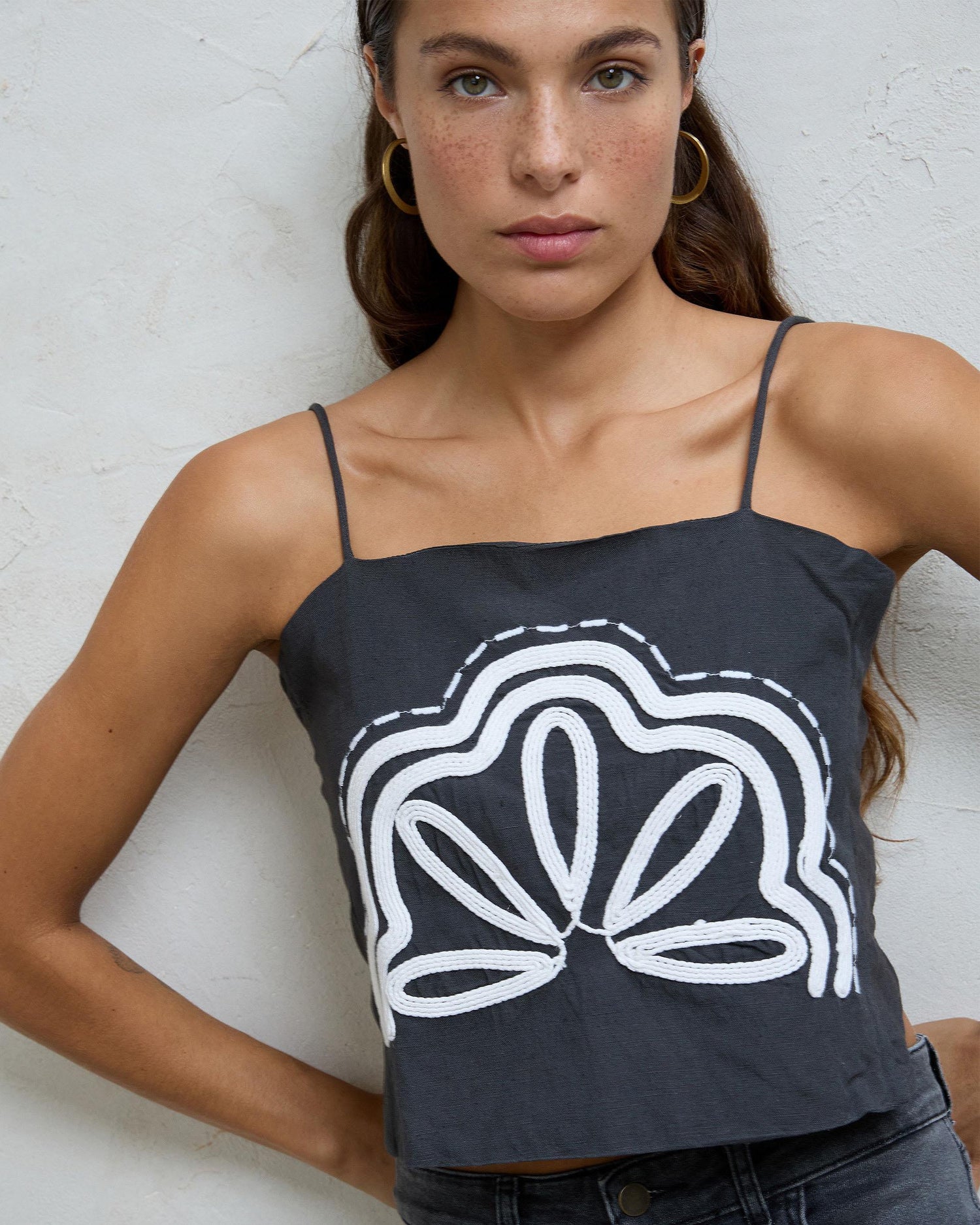 • Calças de ganga com passadores de cinto e botões, antracite.