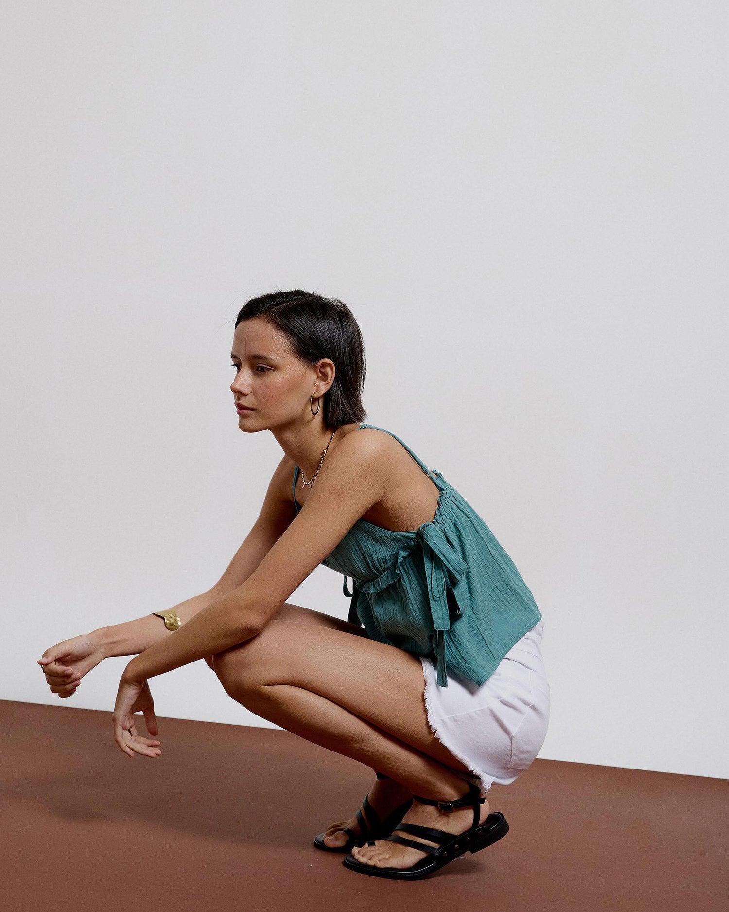 • Calças de ganga com bolsos, perna larga, costura azul.