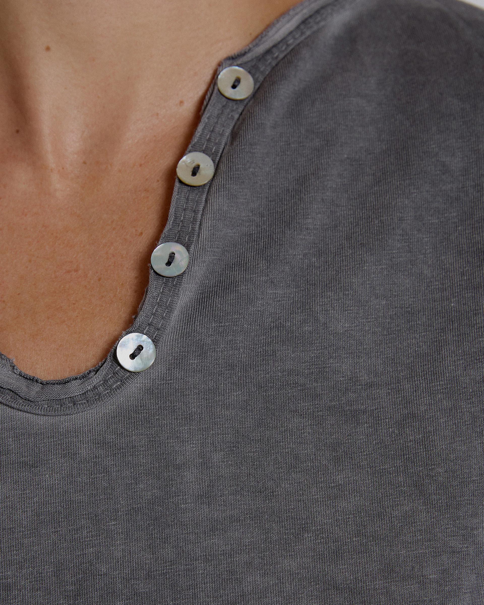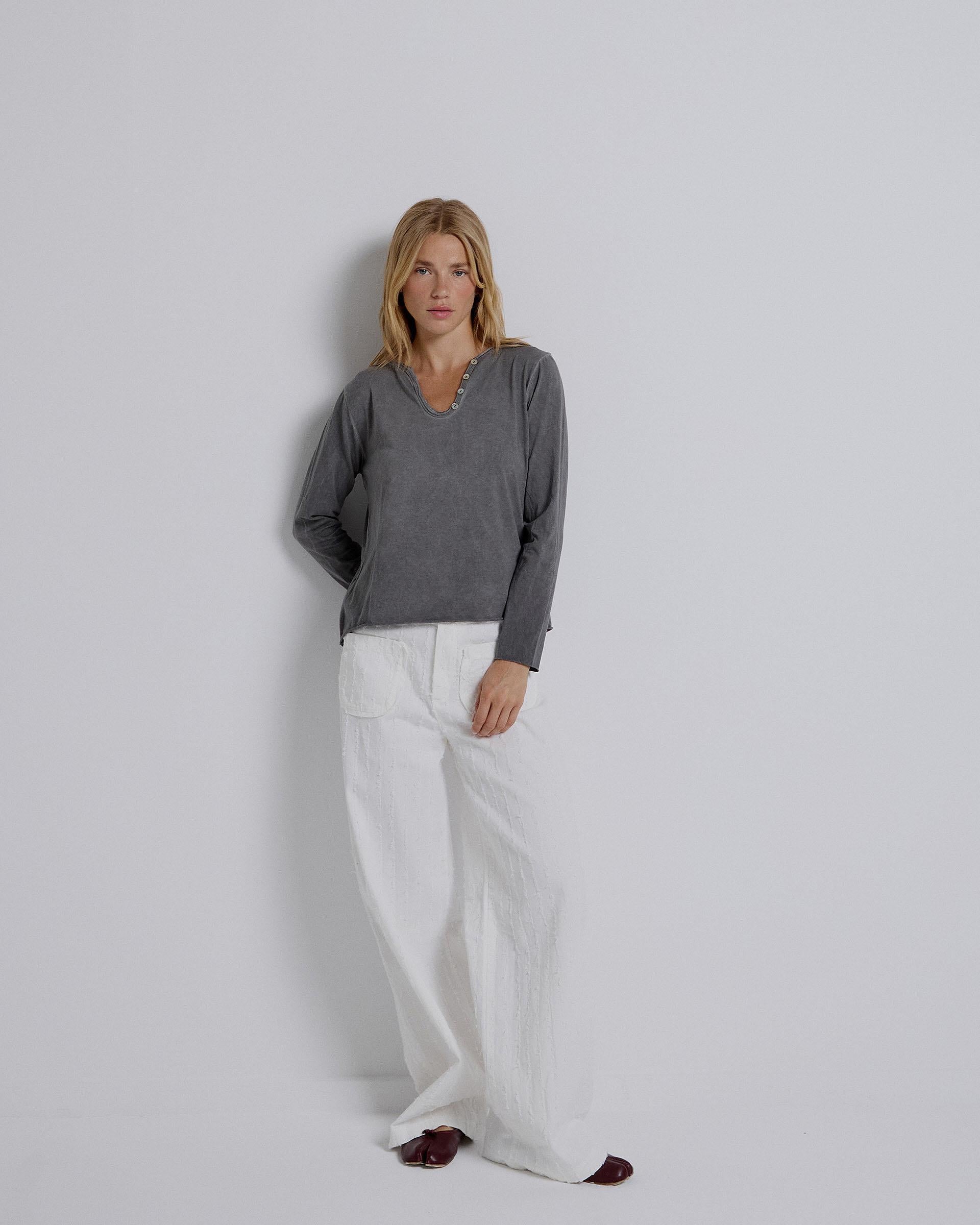 T-shirt de manga comprida em cor antracite, com decote em V e detalhe de botões.