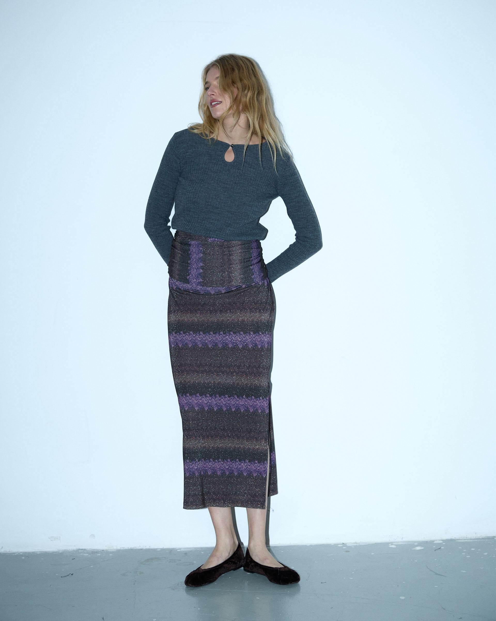 Top de manga larga con detalle de lágrima y botón en delantero, de color gris.