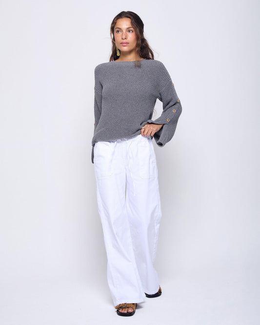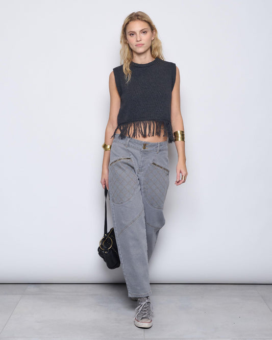 Calças de ganga com passadores de cinto e botões, antracite.