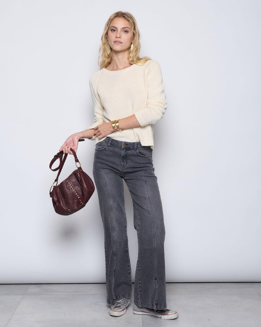 • Calças de ganga com bolsos, perna larga, costura azul.