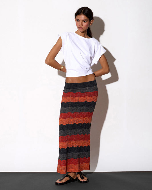Top sem alças, malha lurex às riscas, azul escuro