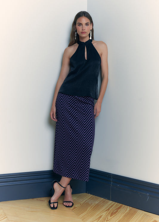 • Casaco roxo de abotoamento duplo com fecho de cordões.