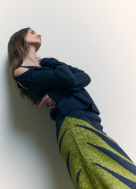 • Calças de ganga com bolsos, perna larga, costura azul.