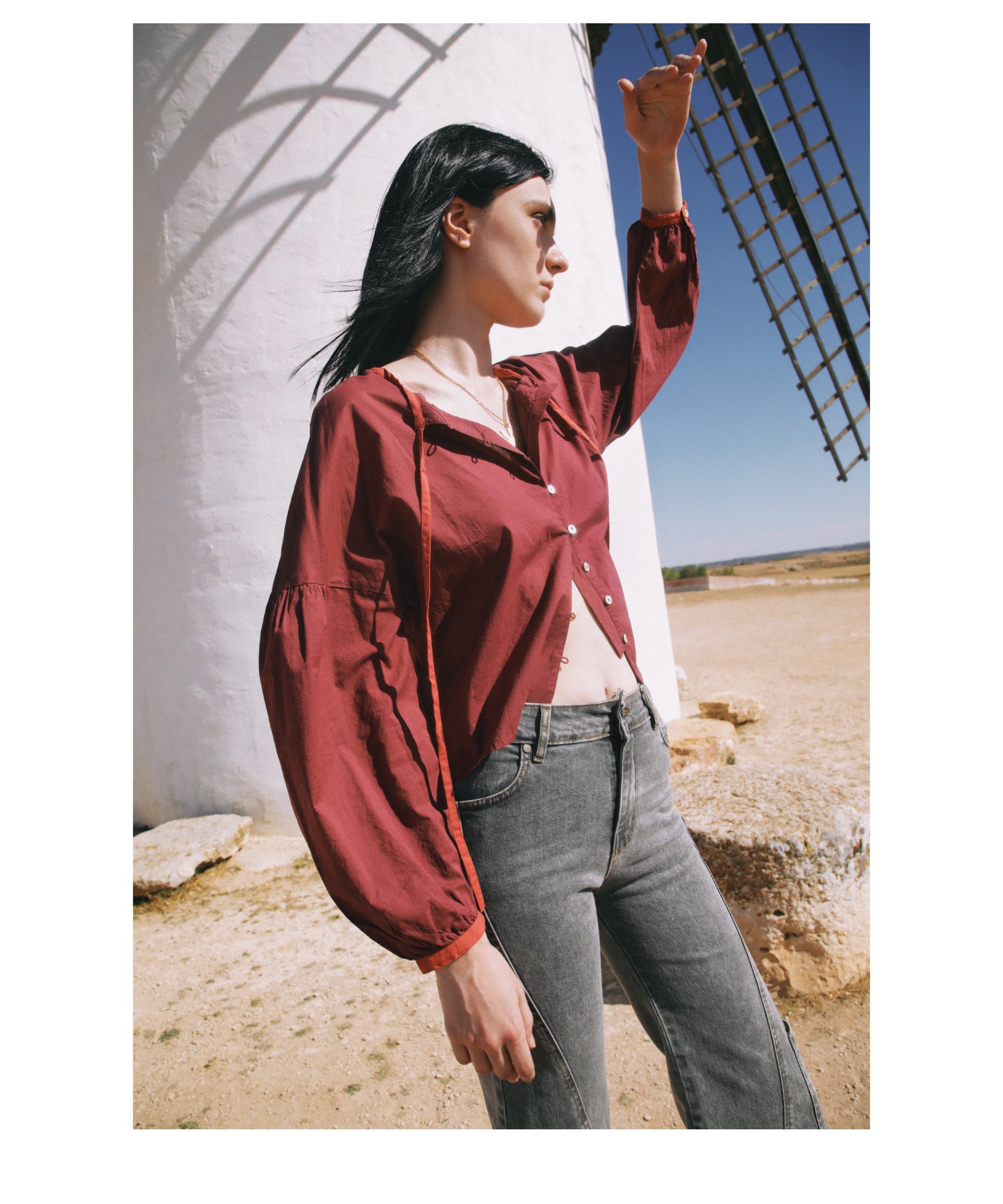 • Calças de ganga com passadores de cinto e botões, antracite.