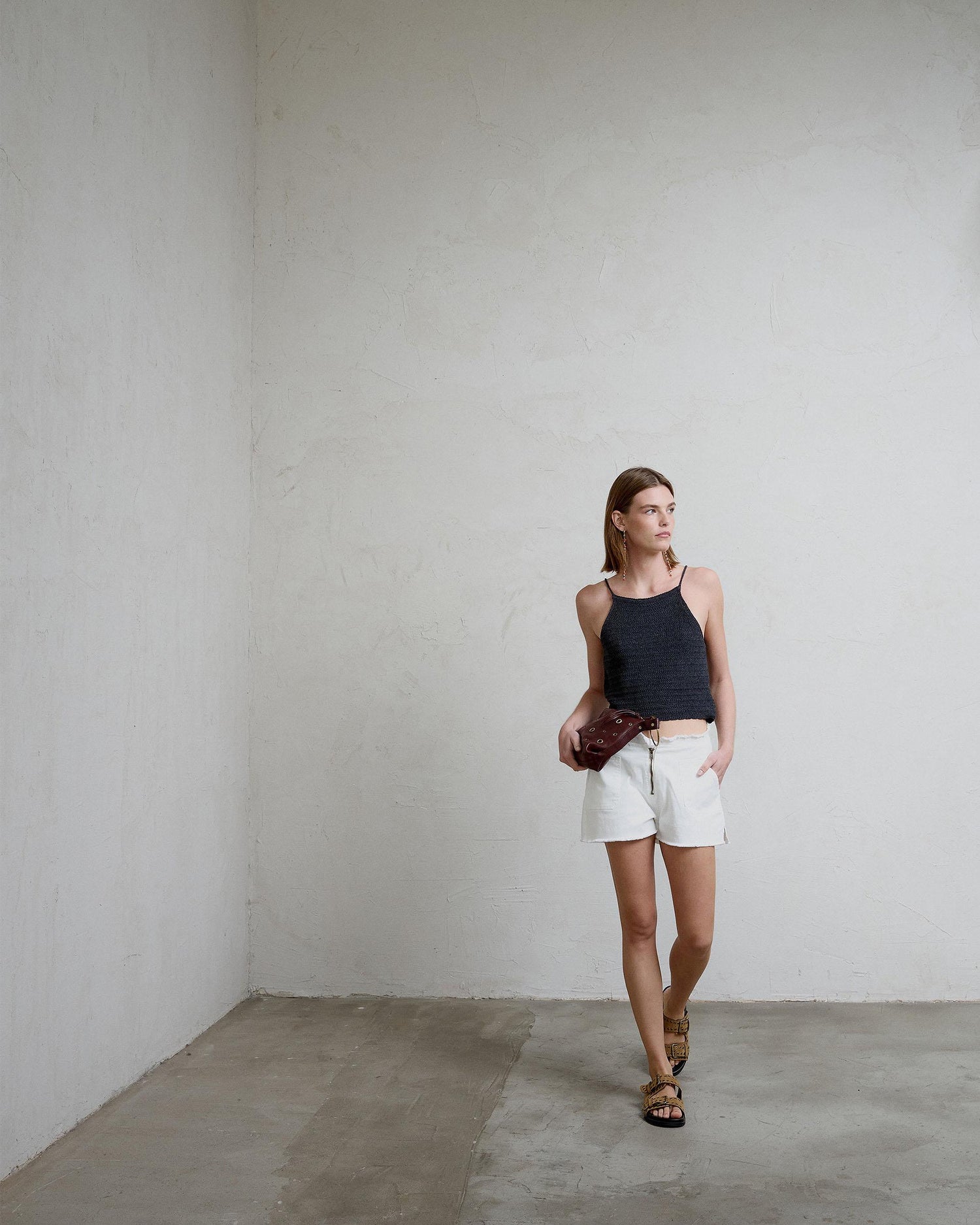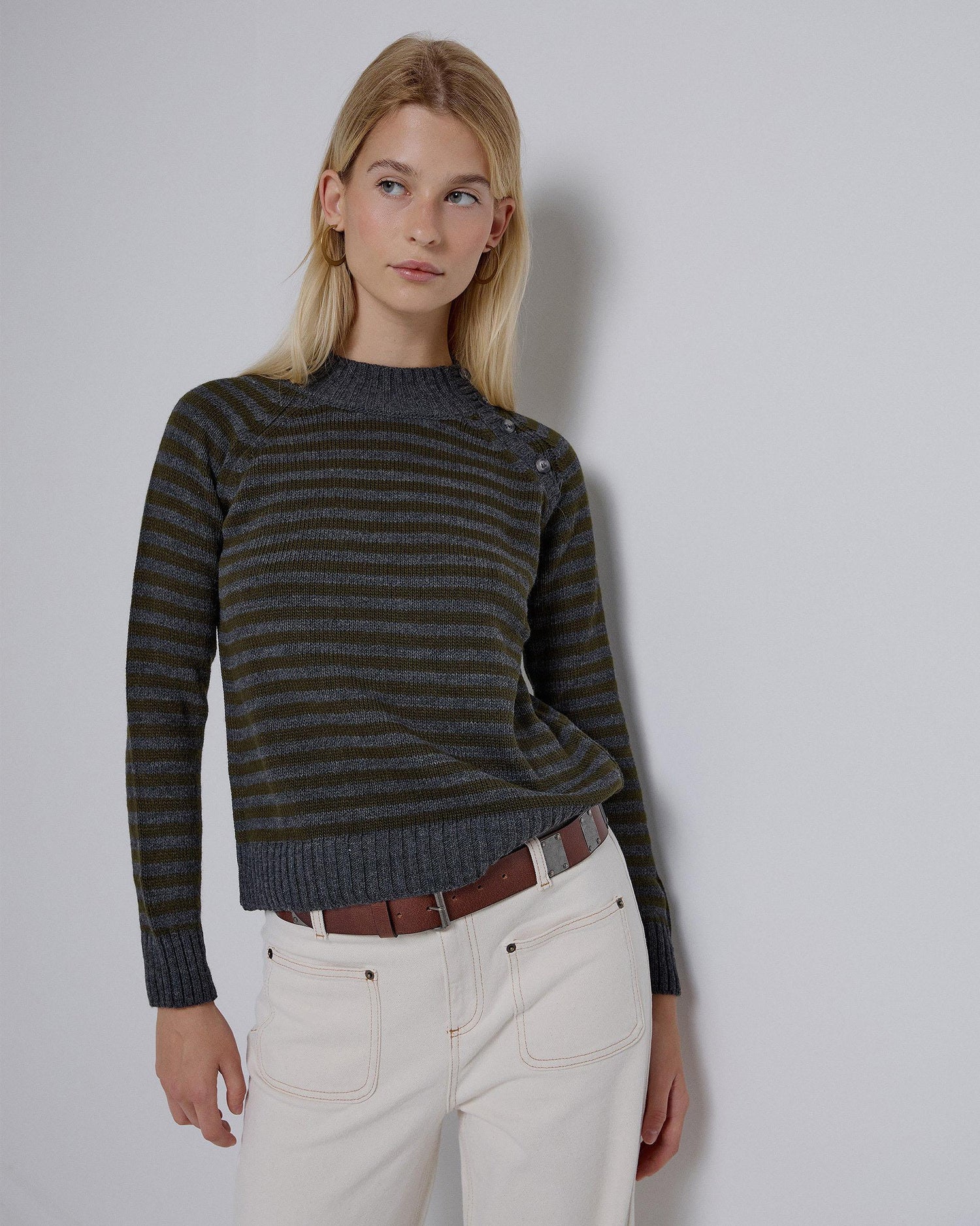 • Calças de ganga com passadores de cinto e botões, antracite.