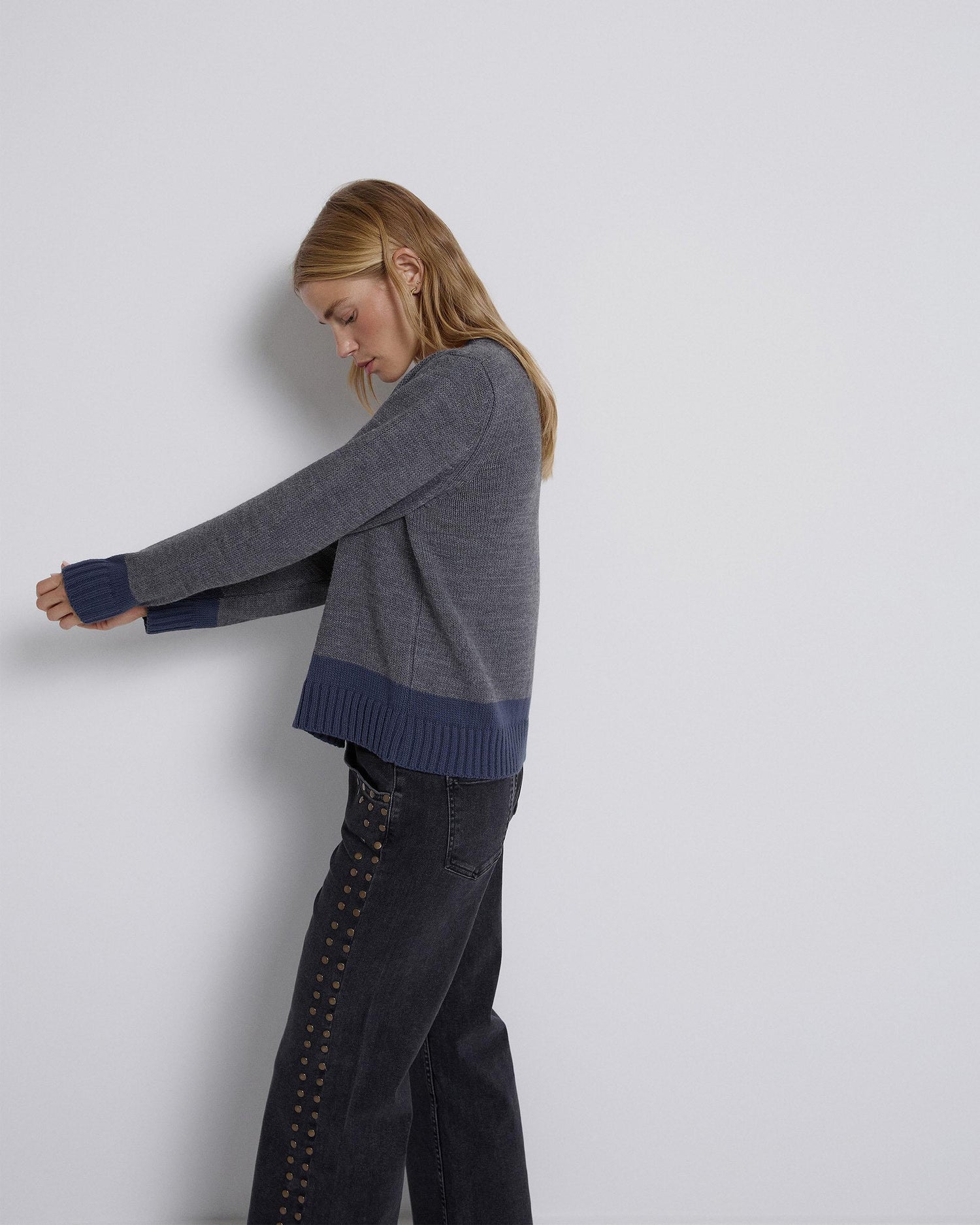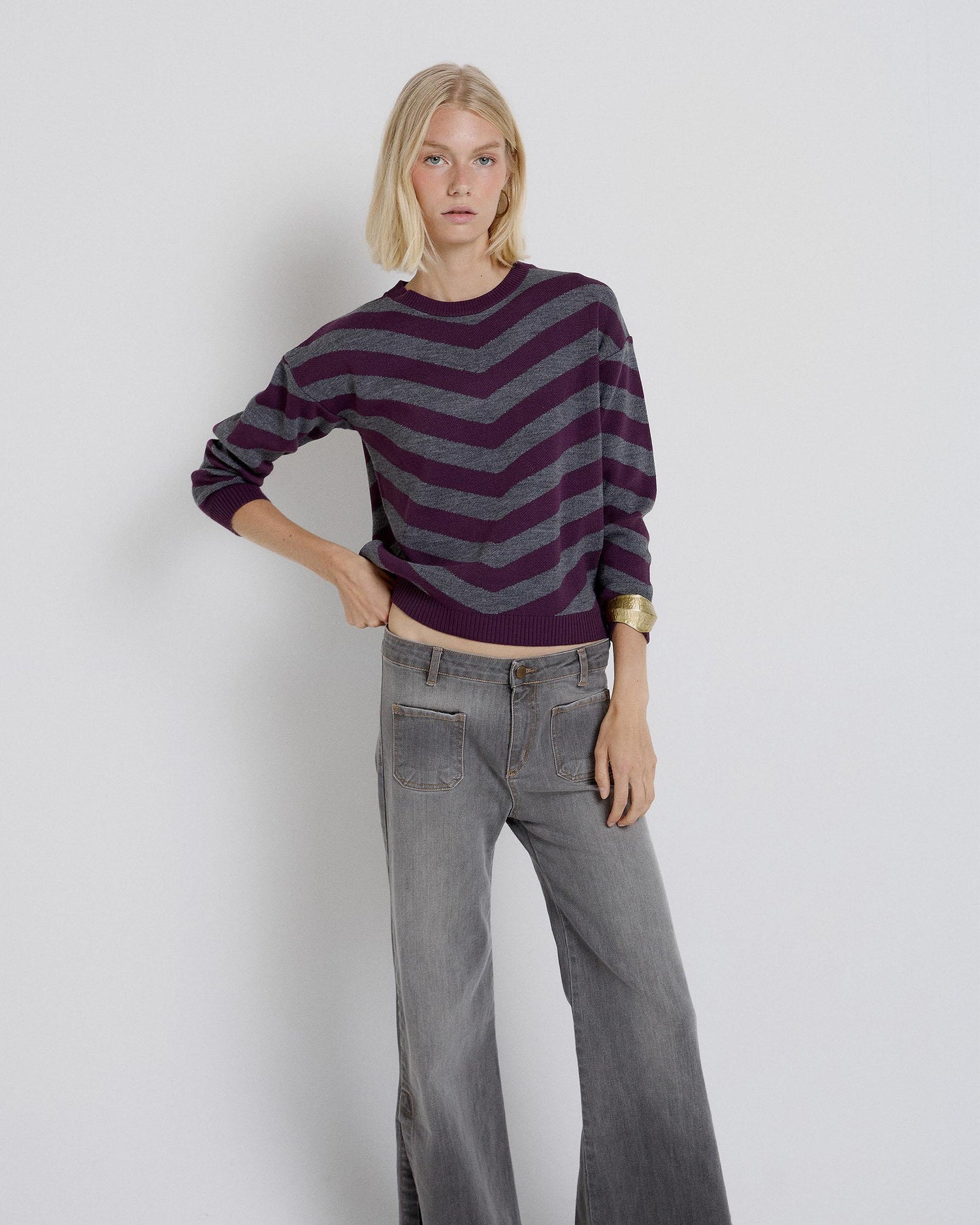 • Calças de ganga com bolsos, perna larga, costura azul.