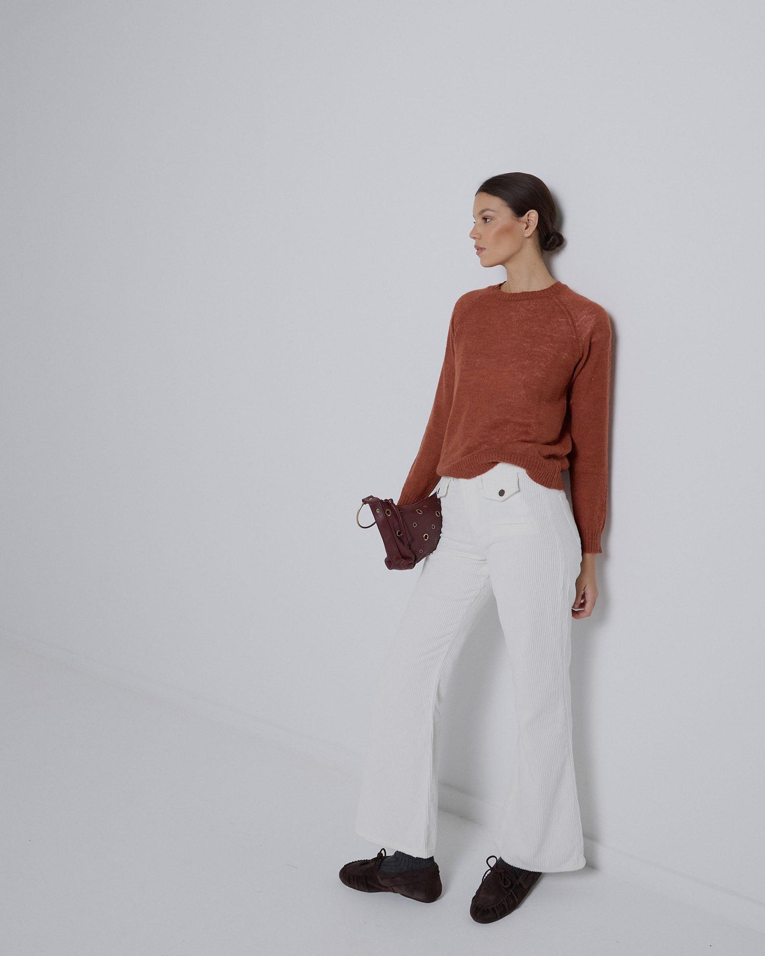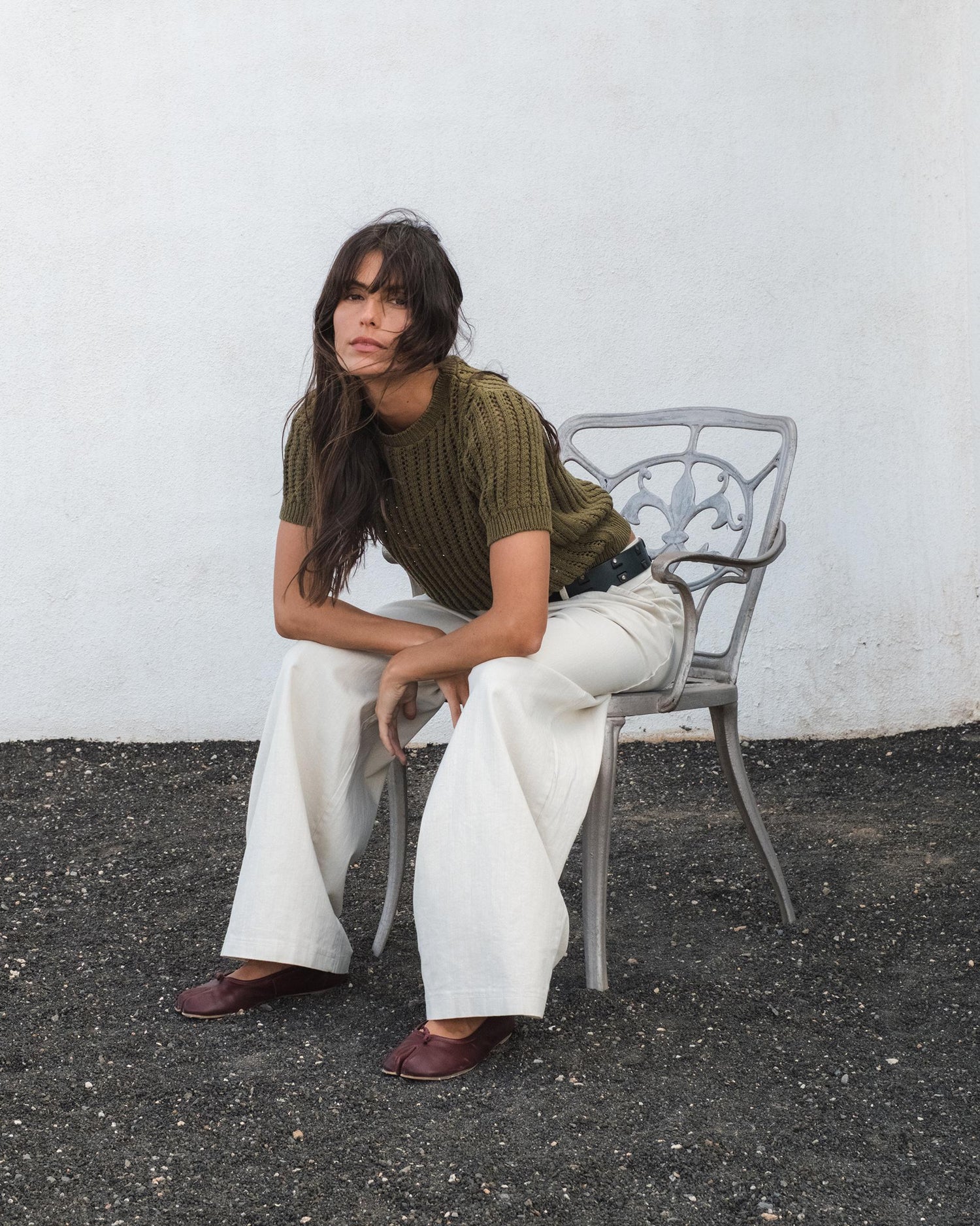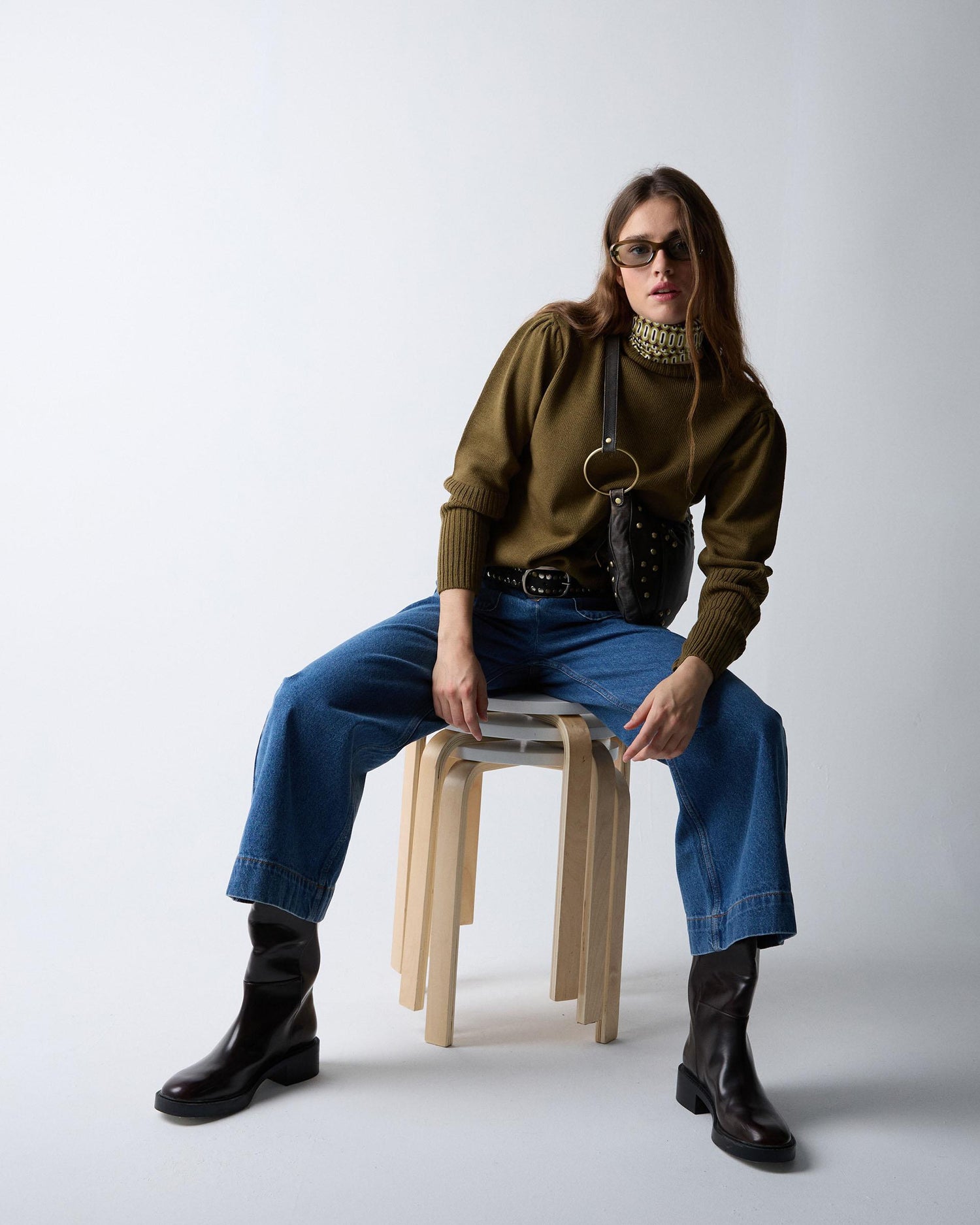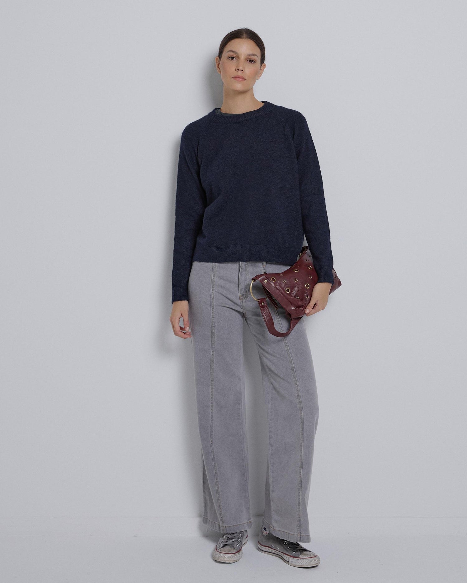 • Calças de ganga com bolsos, perna larga, costura azul.