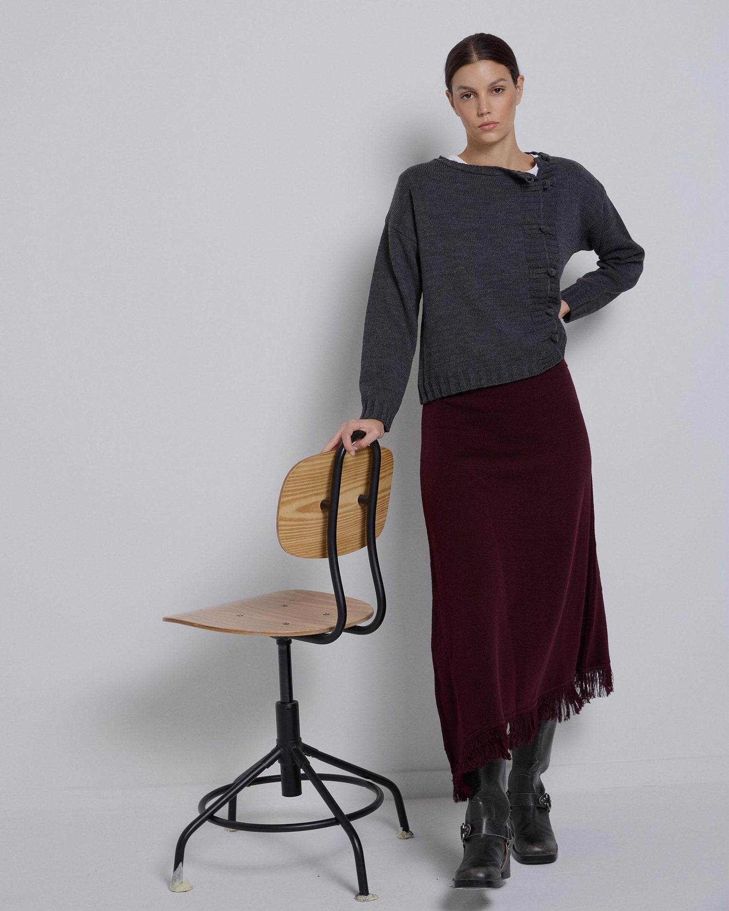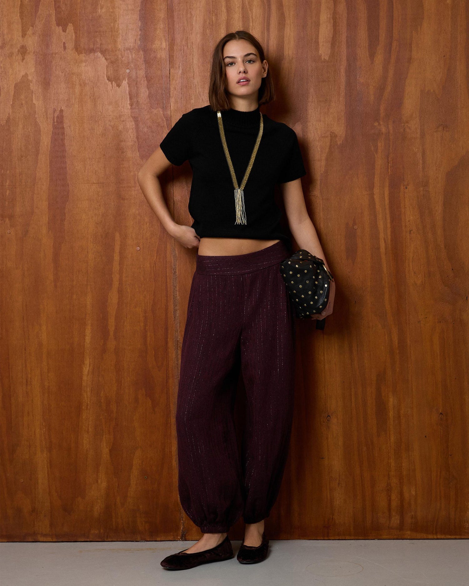 • Casaco roxo de abotoamento duplo com fecho de cordões.