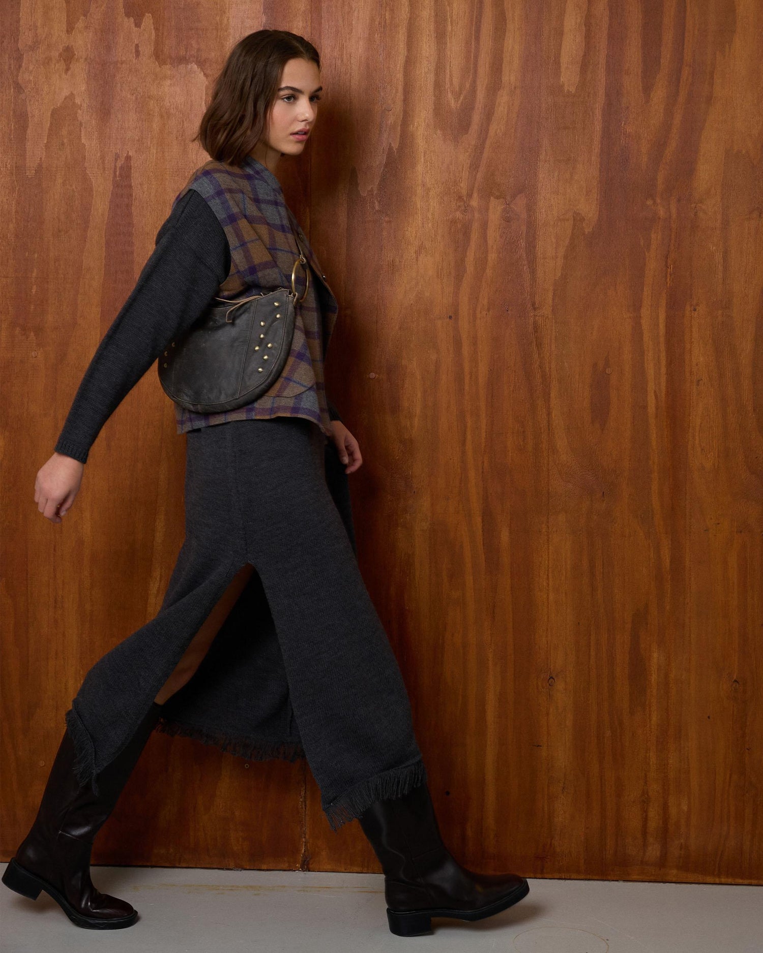 • Calças de ganga com passadores de cinto e botões, antracite.