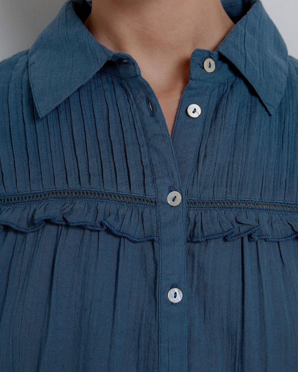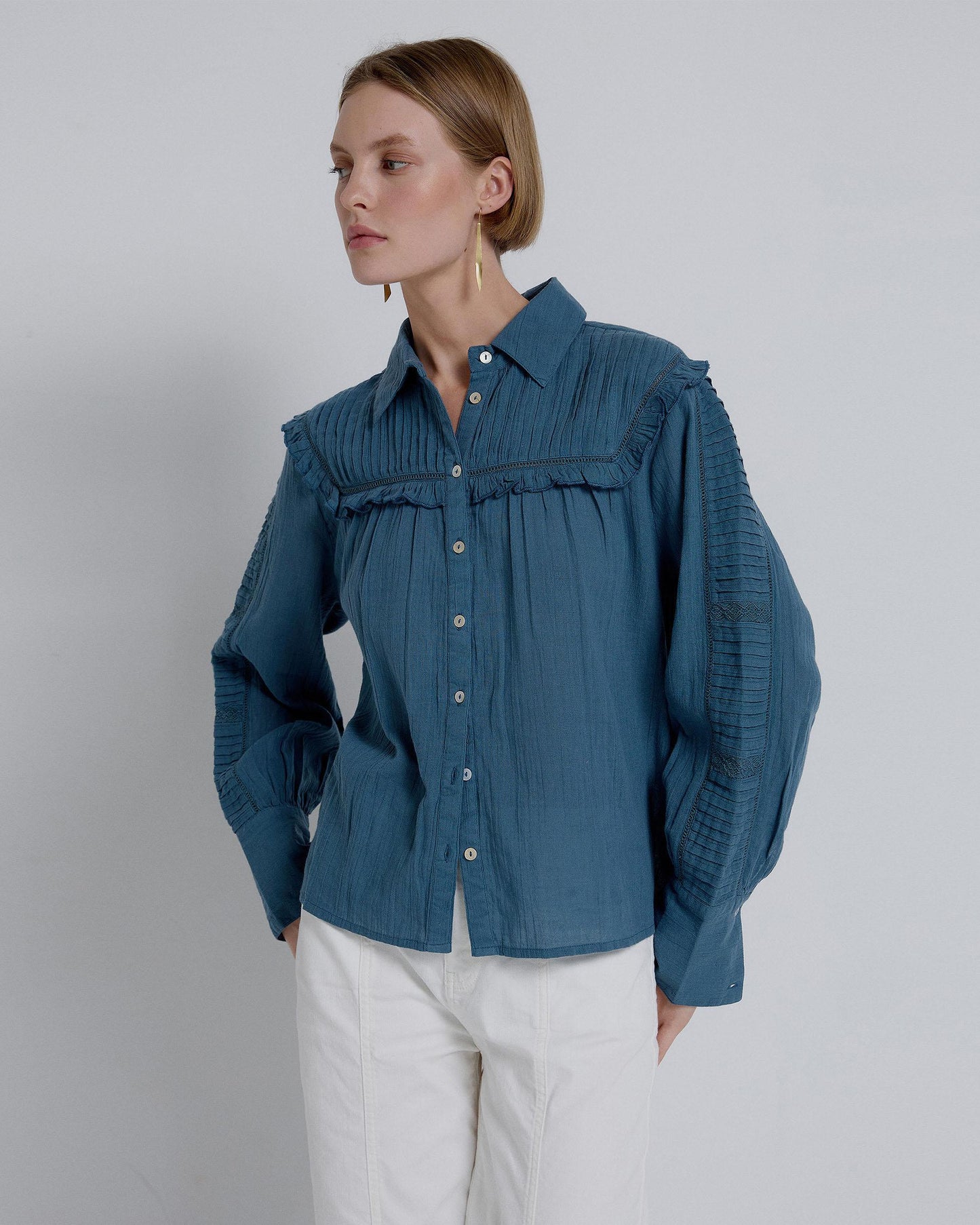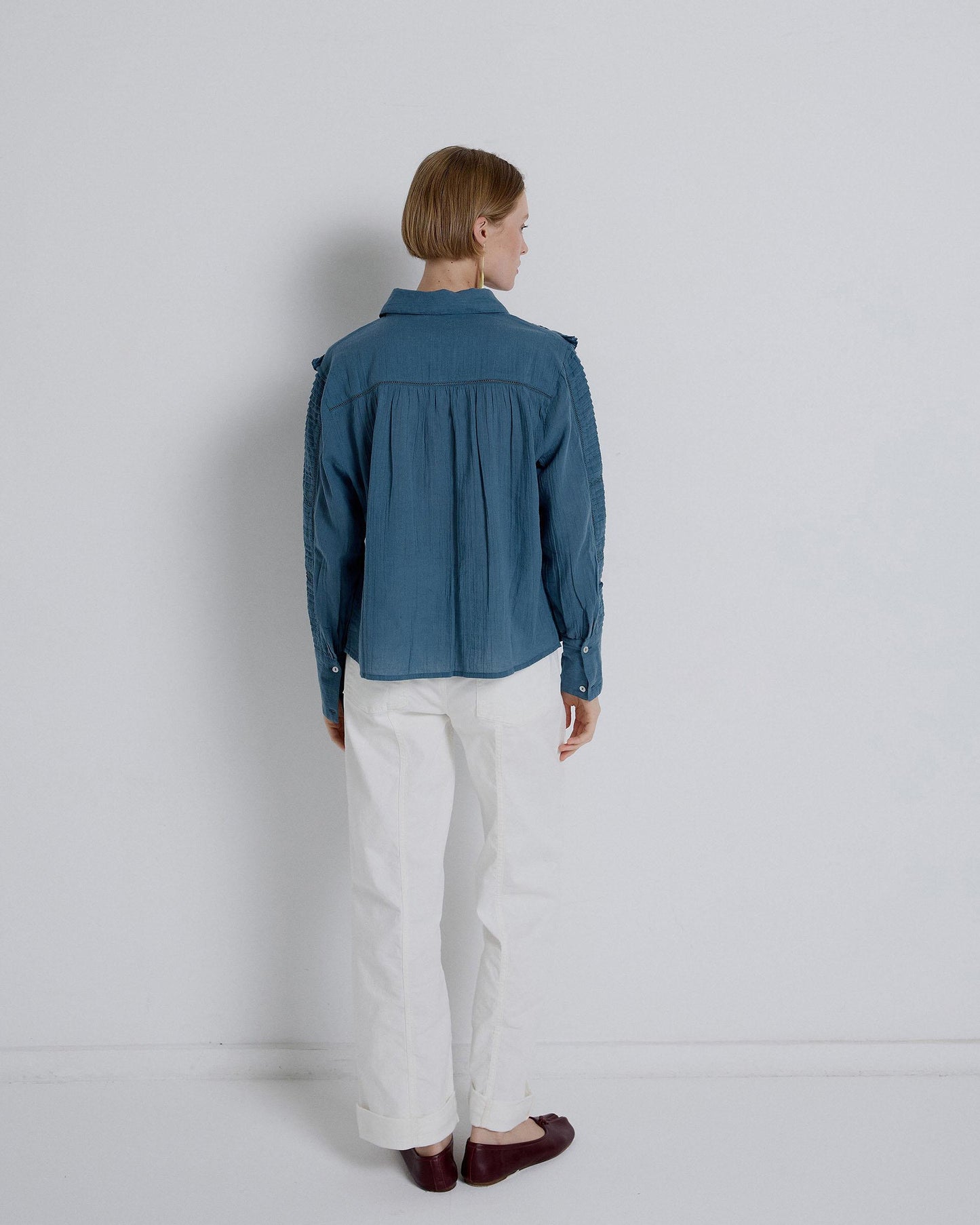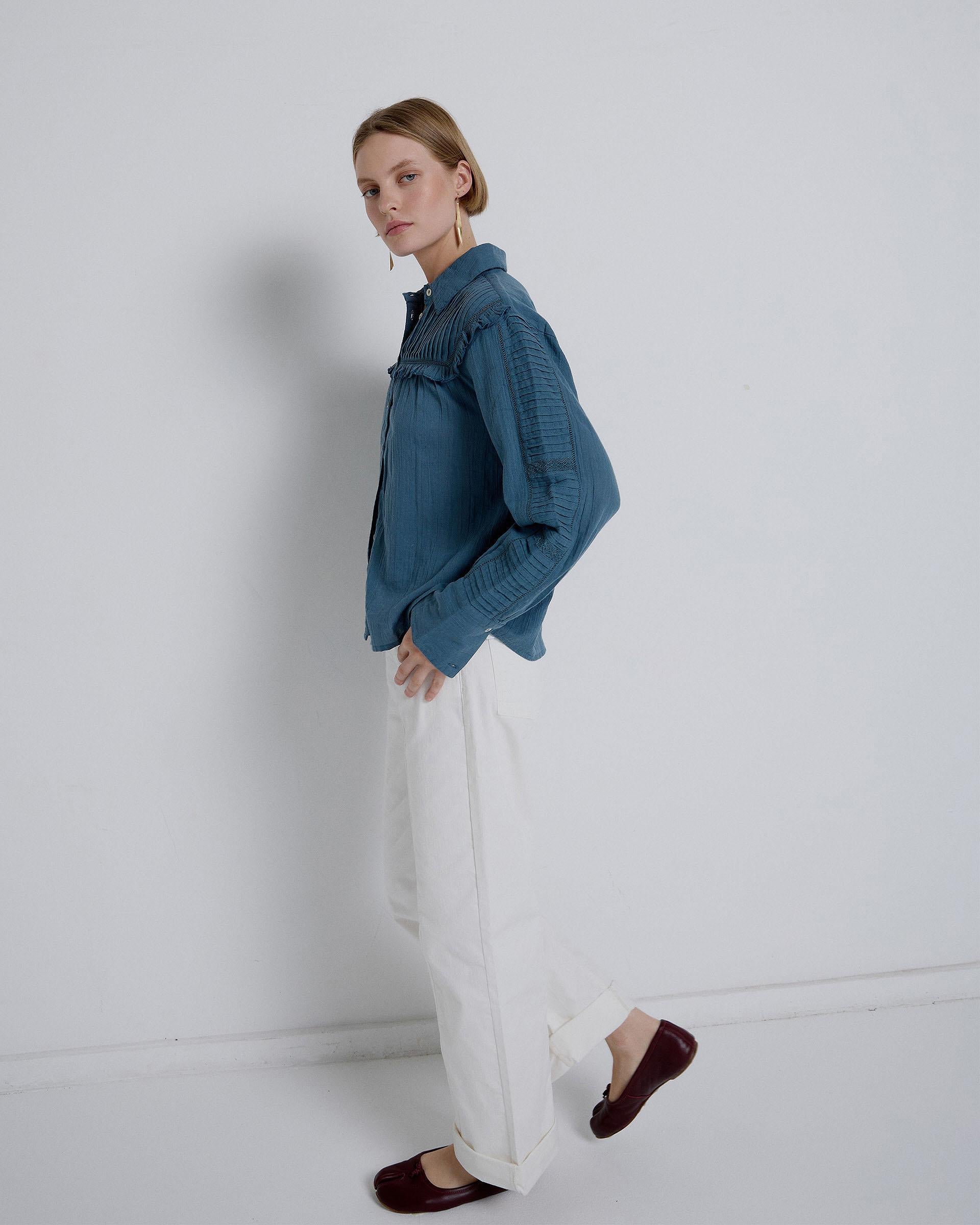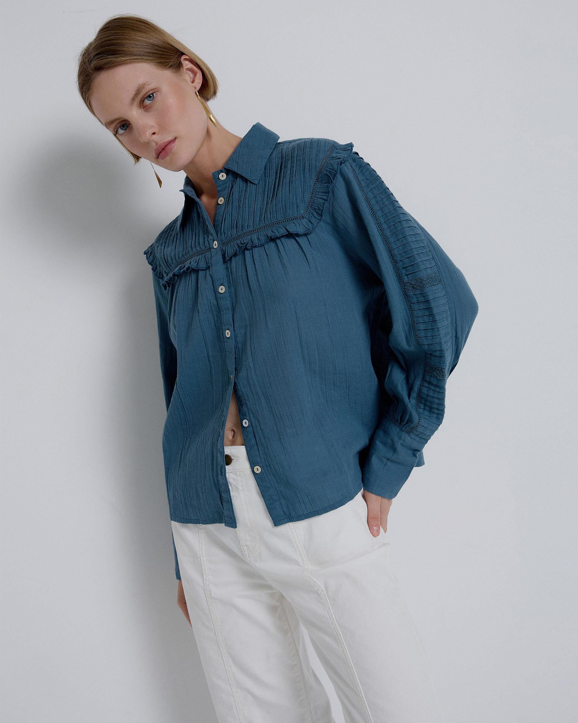 Blusa plissada de manga azul
