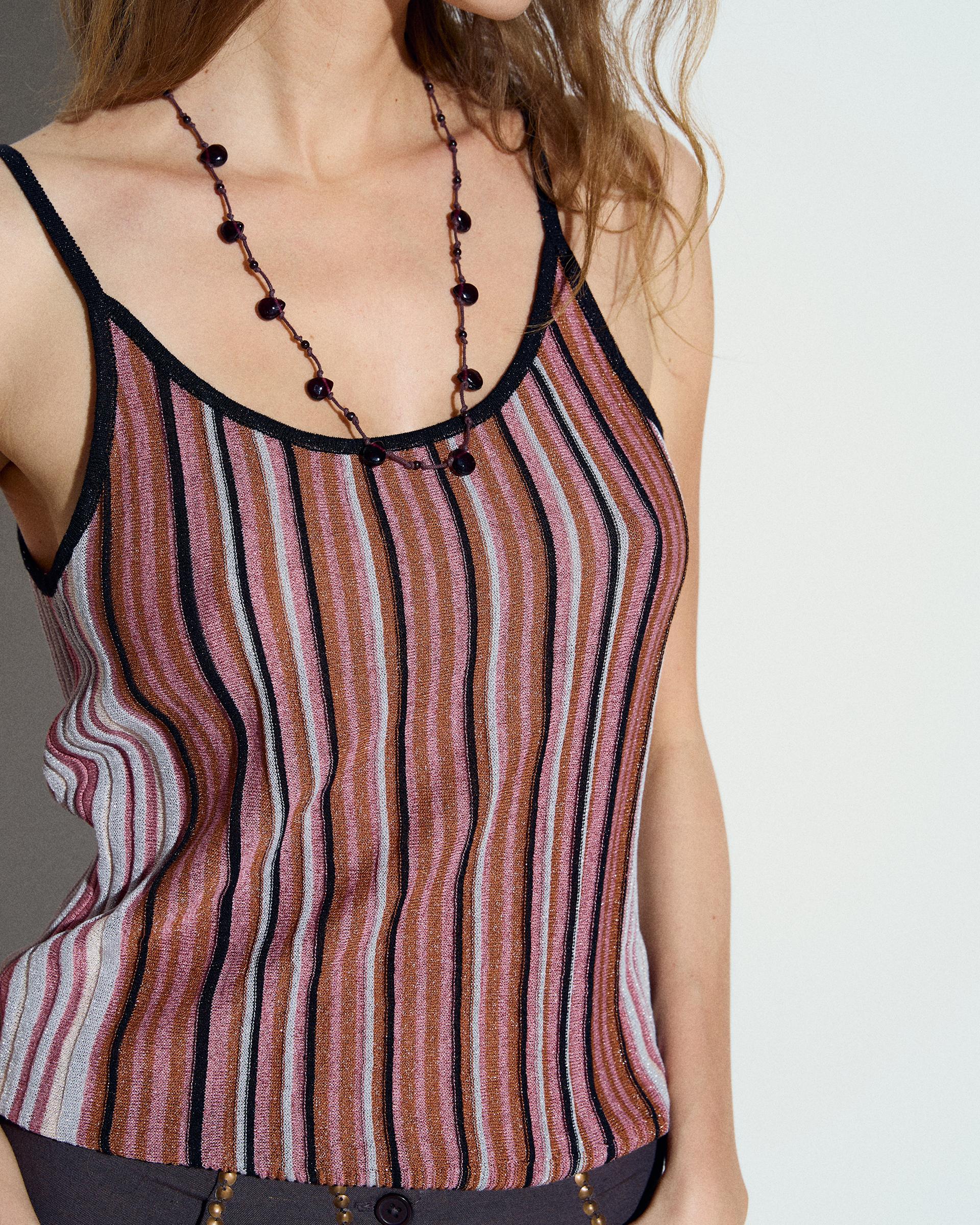 Camisola de alças às riscas em tons de rosa com detalhes em lurex.